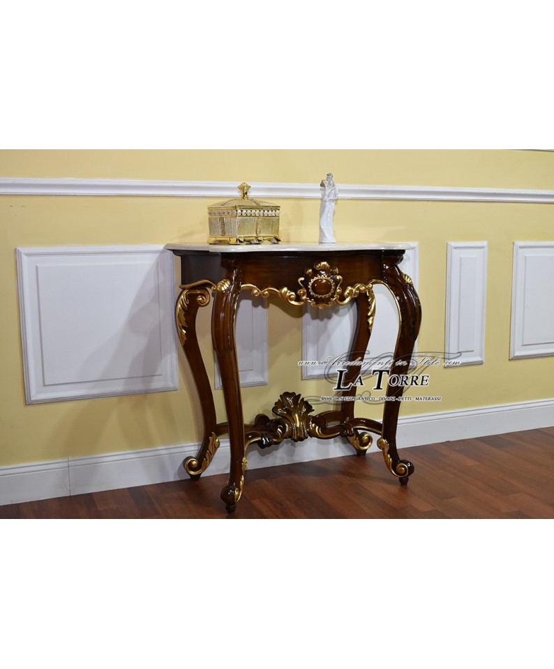 Consolle Luigi Filippo Stile Napoletano 800 noce Oro marmo crema 90 cm Na37