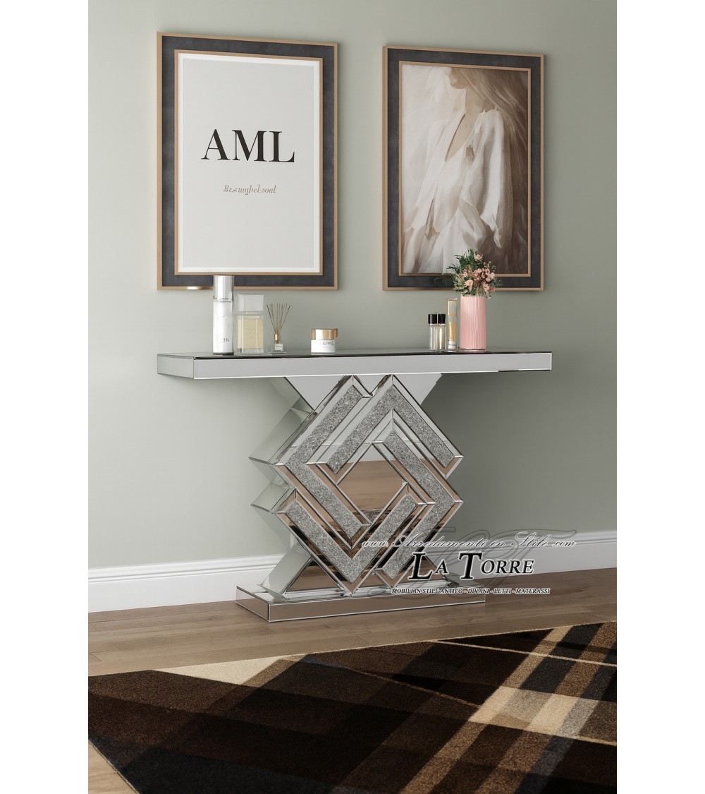 Consolle Specchiata Moderna con Dettagli Swarovski e Design Geometrico di Lusso per Ingresso CBFE55A