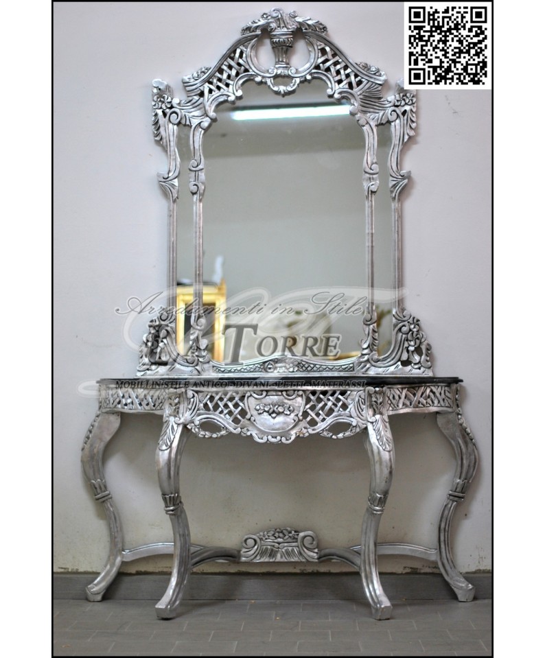 Consolle specchiera traforata entratina Luigi XV Foglia oro barocco k131