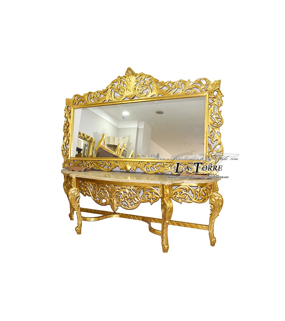 Consolle entratina con specchio Luigi XV Barocco foglia Oro marmo avorio LT3042