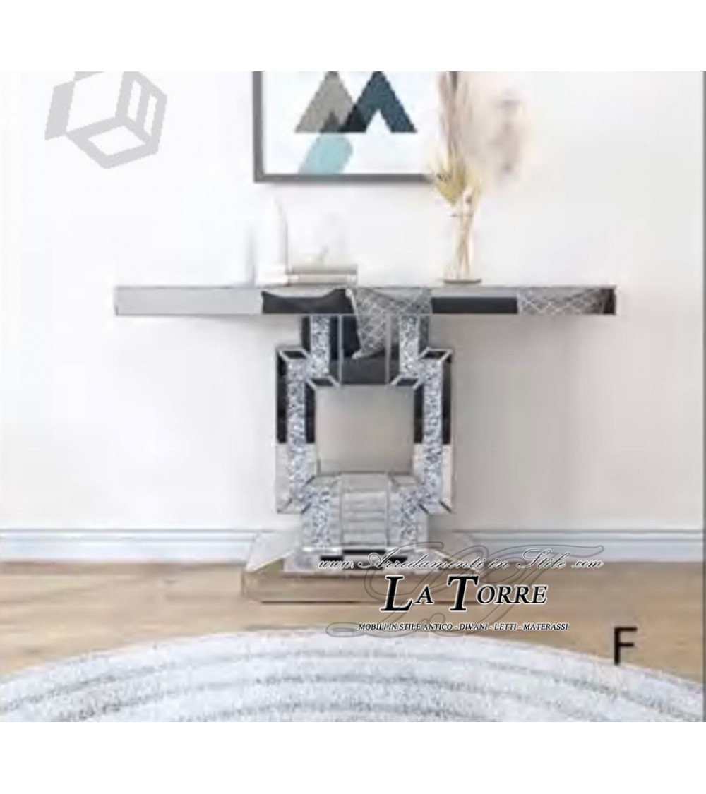 Consolle Specchiata Moderna con Base Rettangolare e Cristalli Swarovski E48F