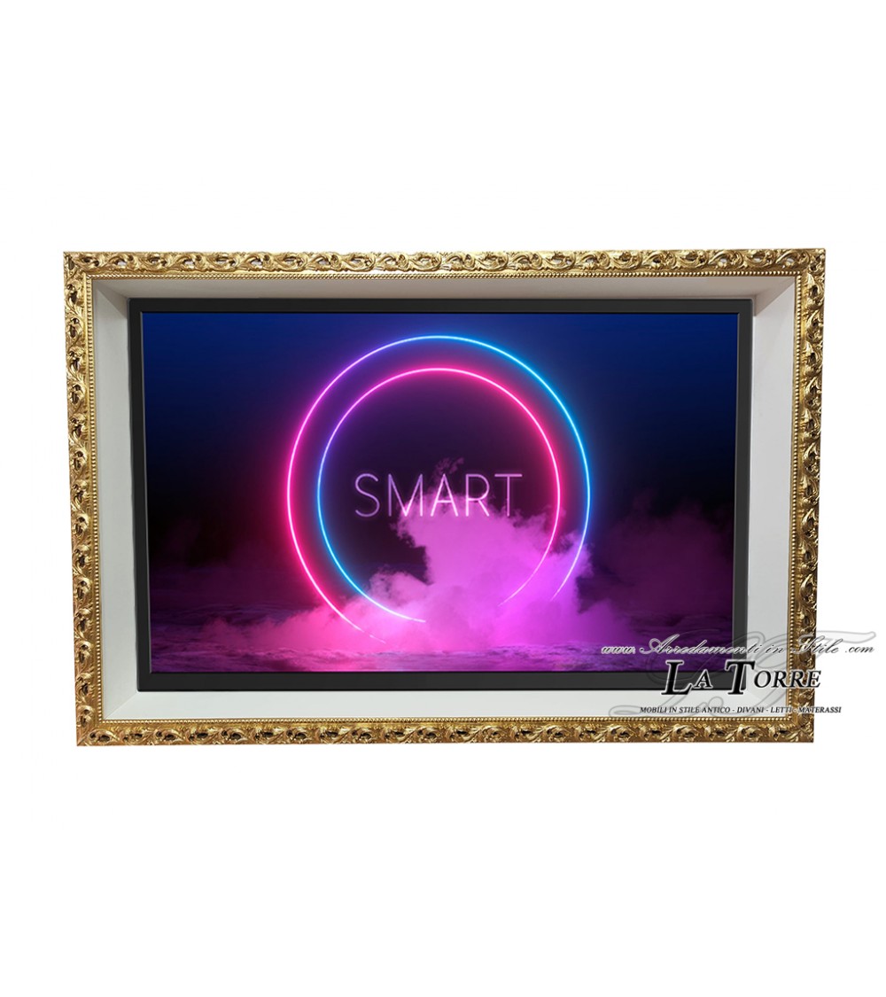 Caratterizzata da intagli elaborati a volute e motivi fogliacei, questa cornice regale trasforma il tuo televisore in un'autentica opera d'arte. L'elegante finitura in foglia oro e i dettagli ornamentali conferiscono un tocco di lusso e raffinatezza, integrando perfettamente la tecnologia nel tuo arredamento più classico.