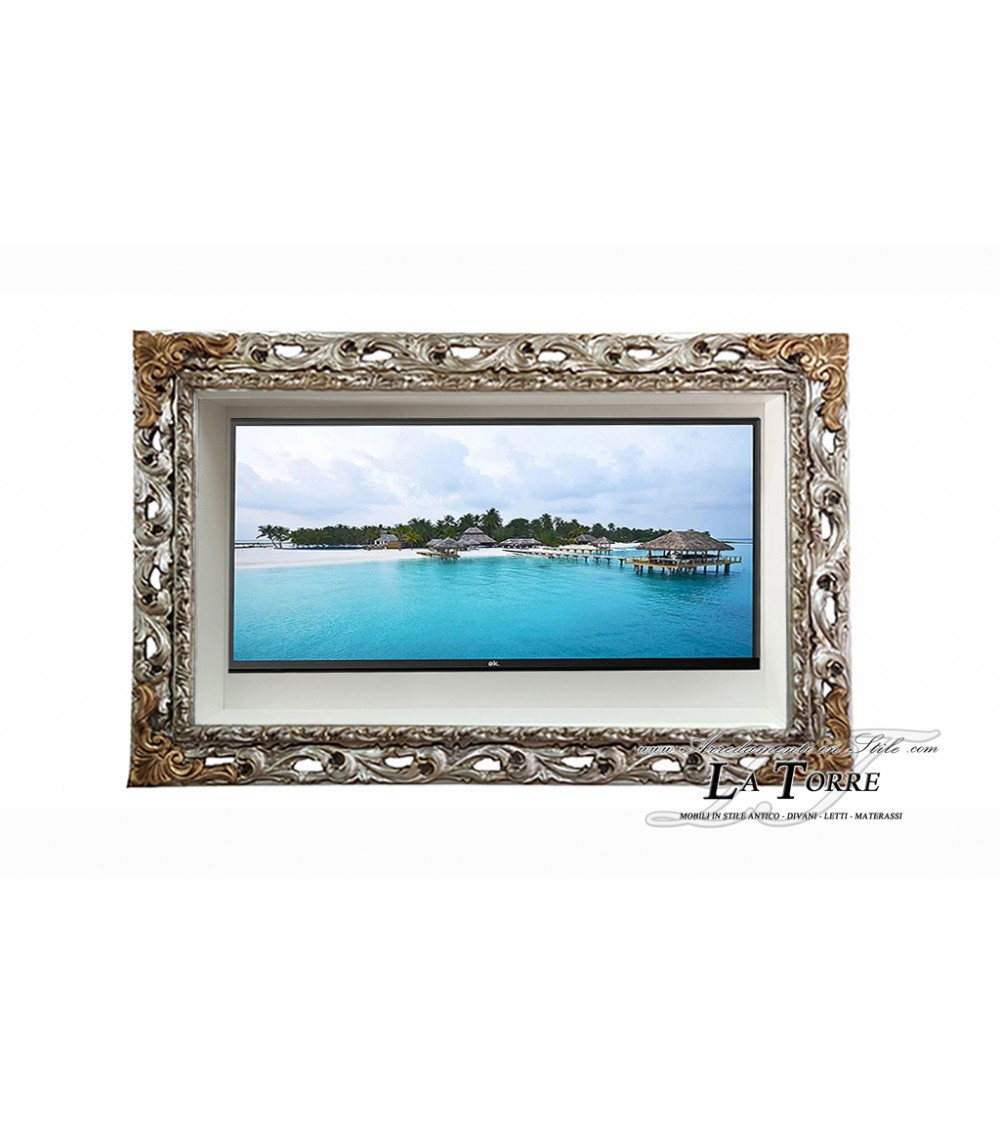 Mobile sospeso porta Smart TV con cornice traforata classica da parete stile Barocco box su misura GGAO