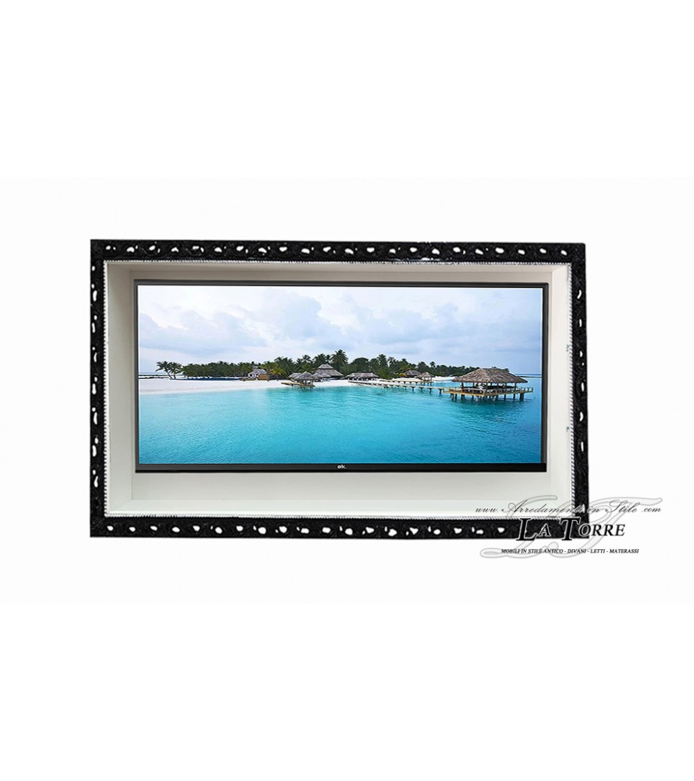 Mobile sospeso porta Smart TV con cornice traforata classica da parete stile Barocco box su misura GM224n
