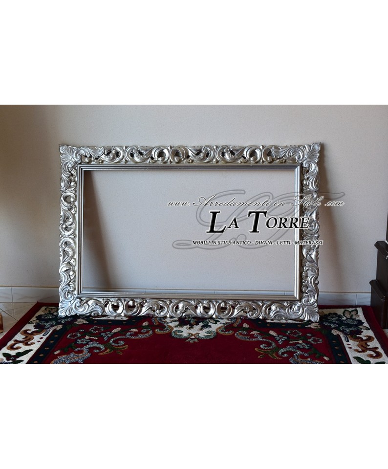 Cornice traforata quadro classico barocco su misura legno argento 1135A