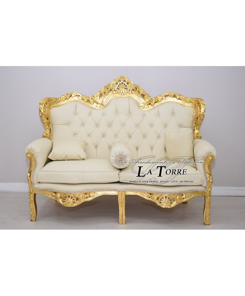 Poltrona divano Luigi XV Trono Barocco oro tessuto damascato giglio avorio Swarovski AL1782