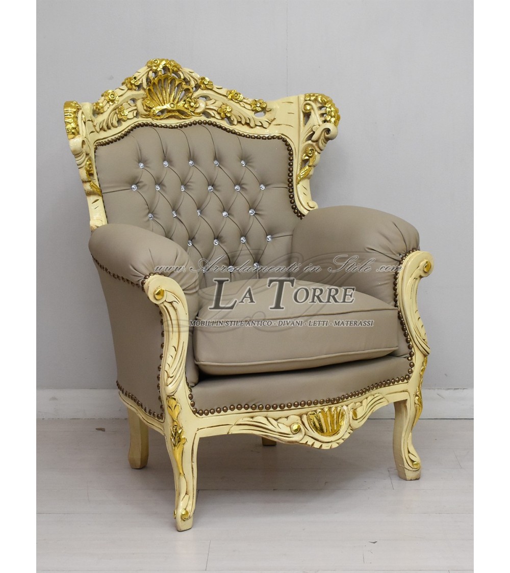 Sedia Poltrona Germany Trono Barocco avorio e oro ecopelle tortora AL4227