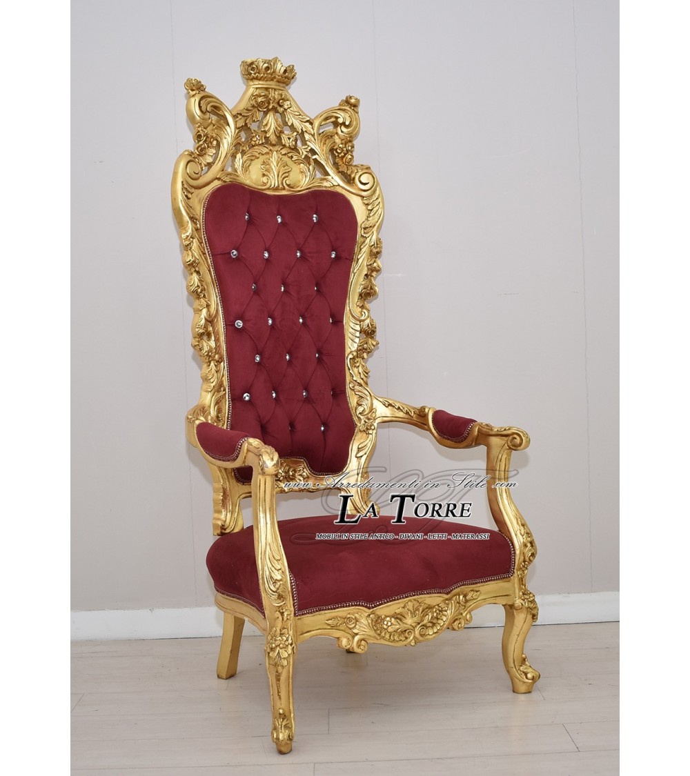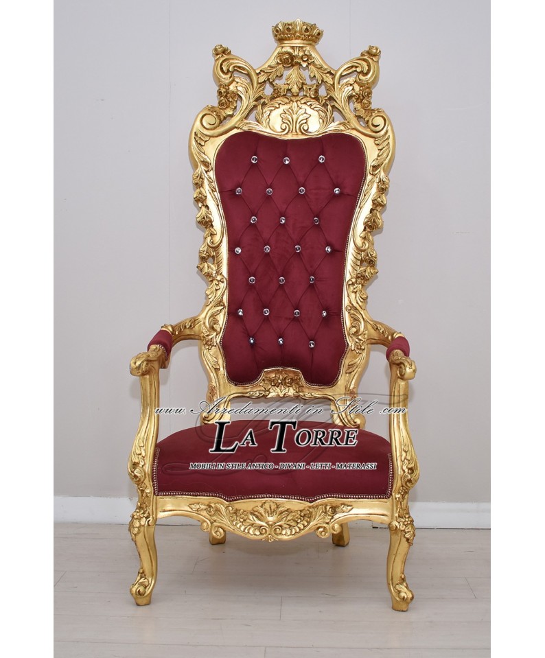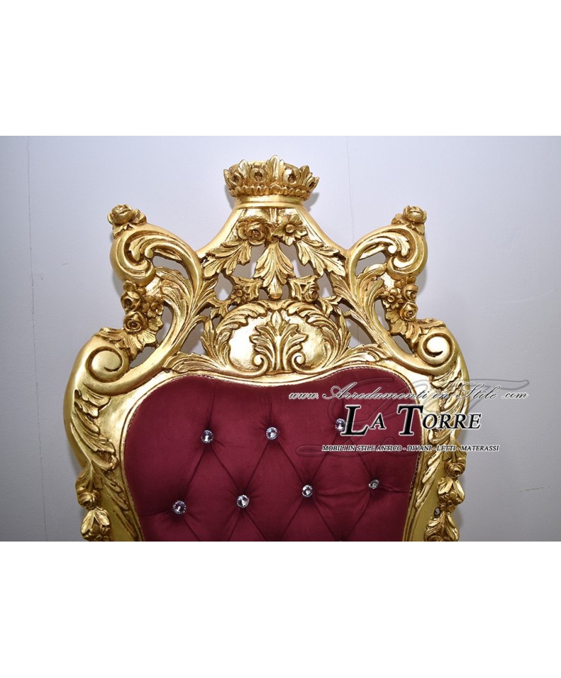 Sedia Poltrona Trono Barocco foglia oro tessuto velluto bordeaux MA1317