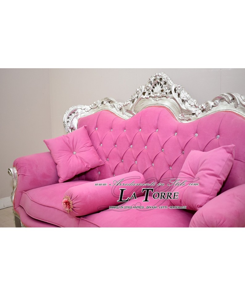 Divano Poltrona Germany Salotto Foglia Argento Barocco legno massello velluto fucsia MA0104
