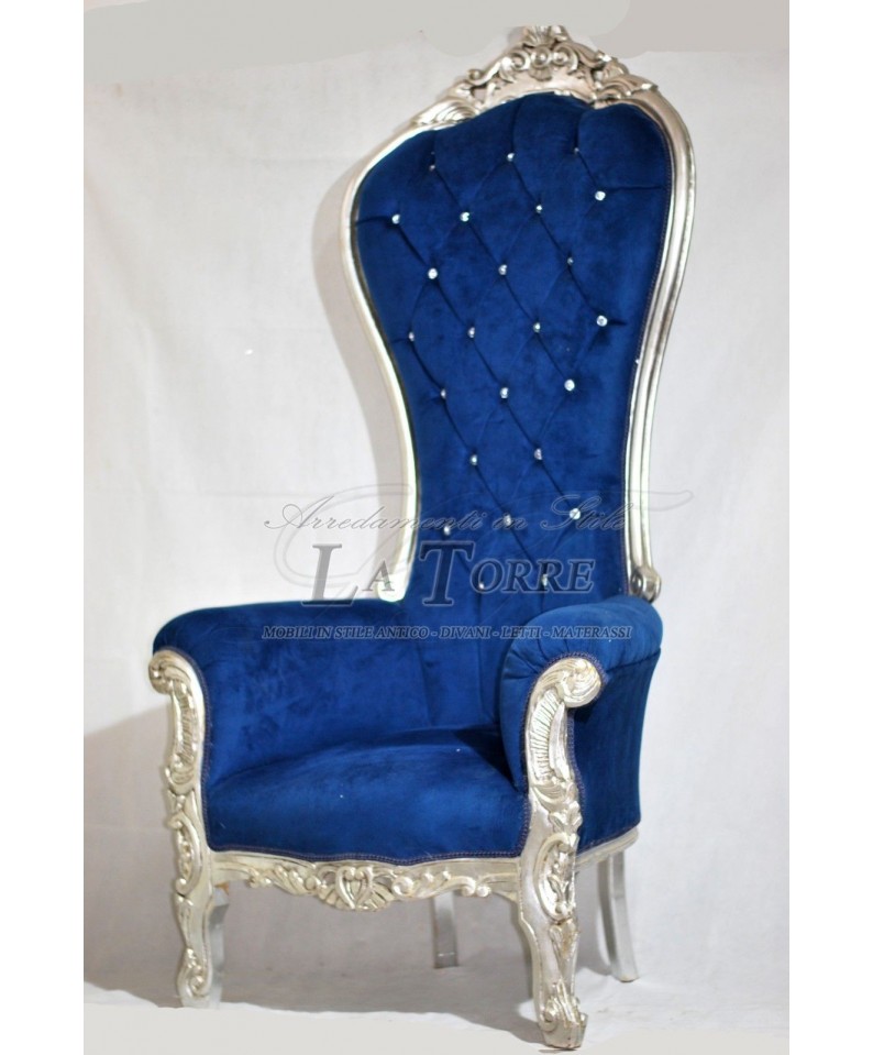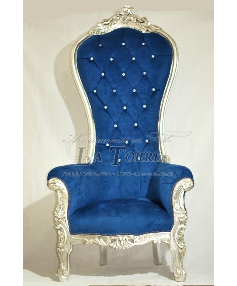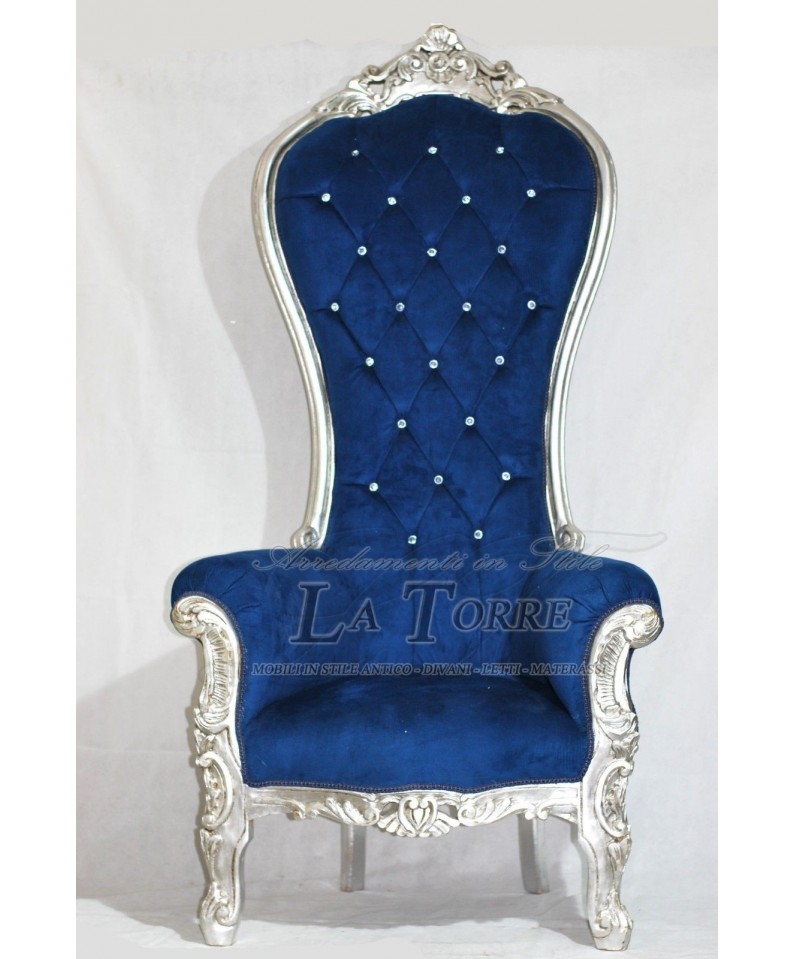 Trono Poltrona stile Barocco argento velluto blu Swarovski Ar7579