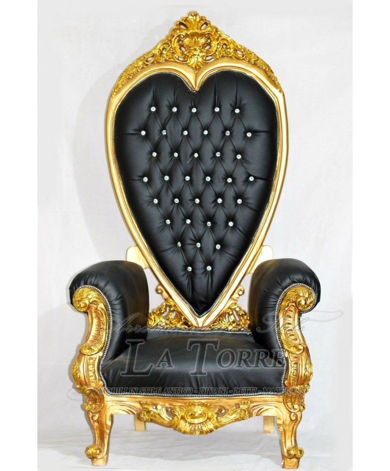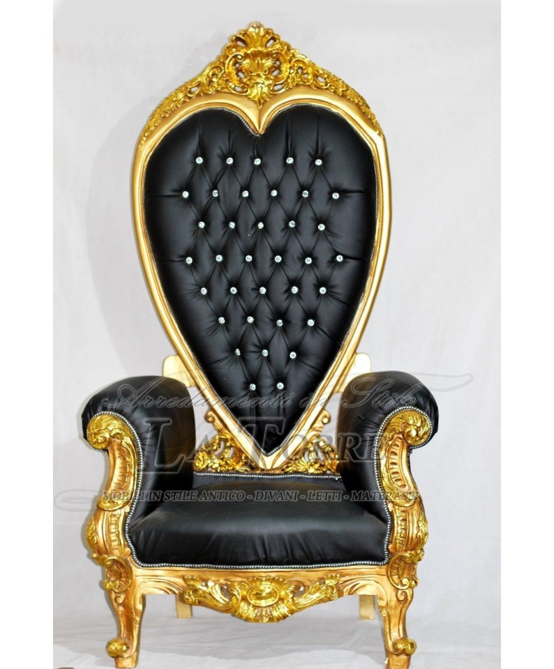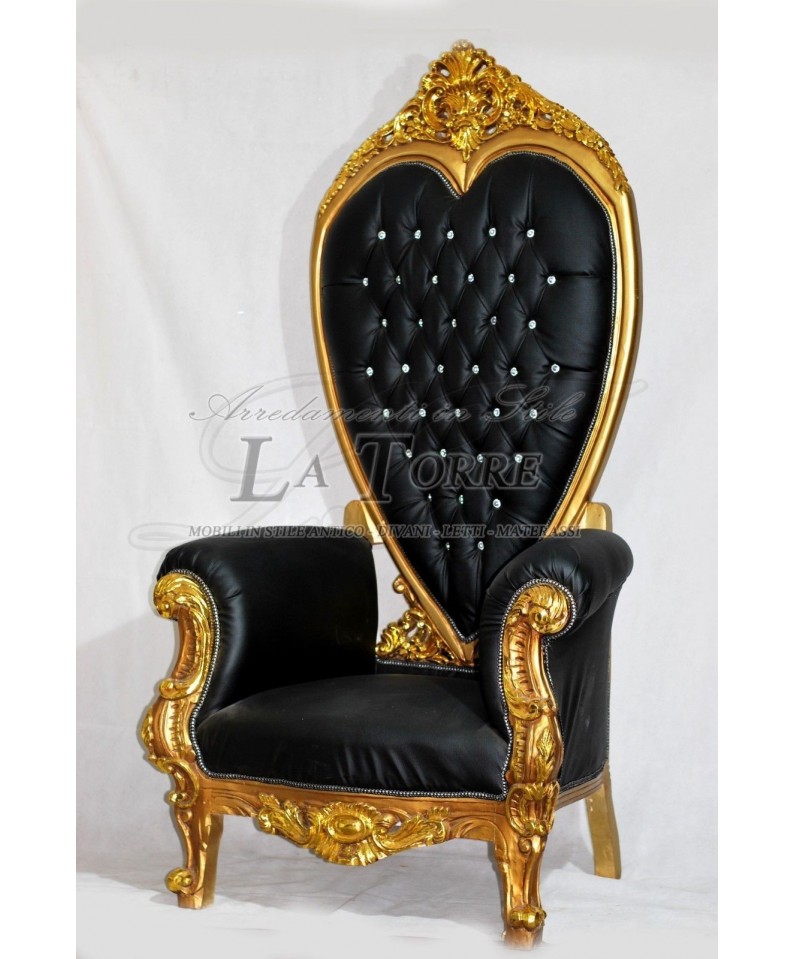 Poltrona impero trono barocco sedia Luigi XV oro ecopelle o vellutino nera AR8082