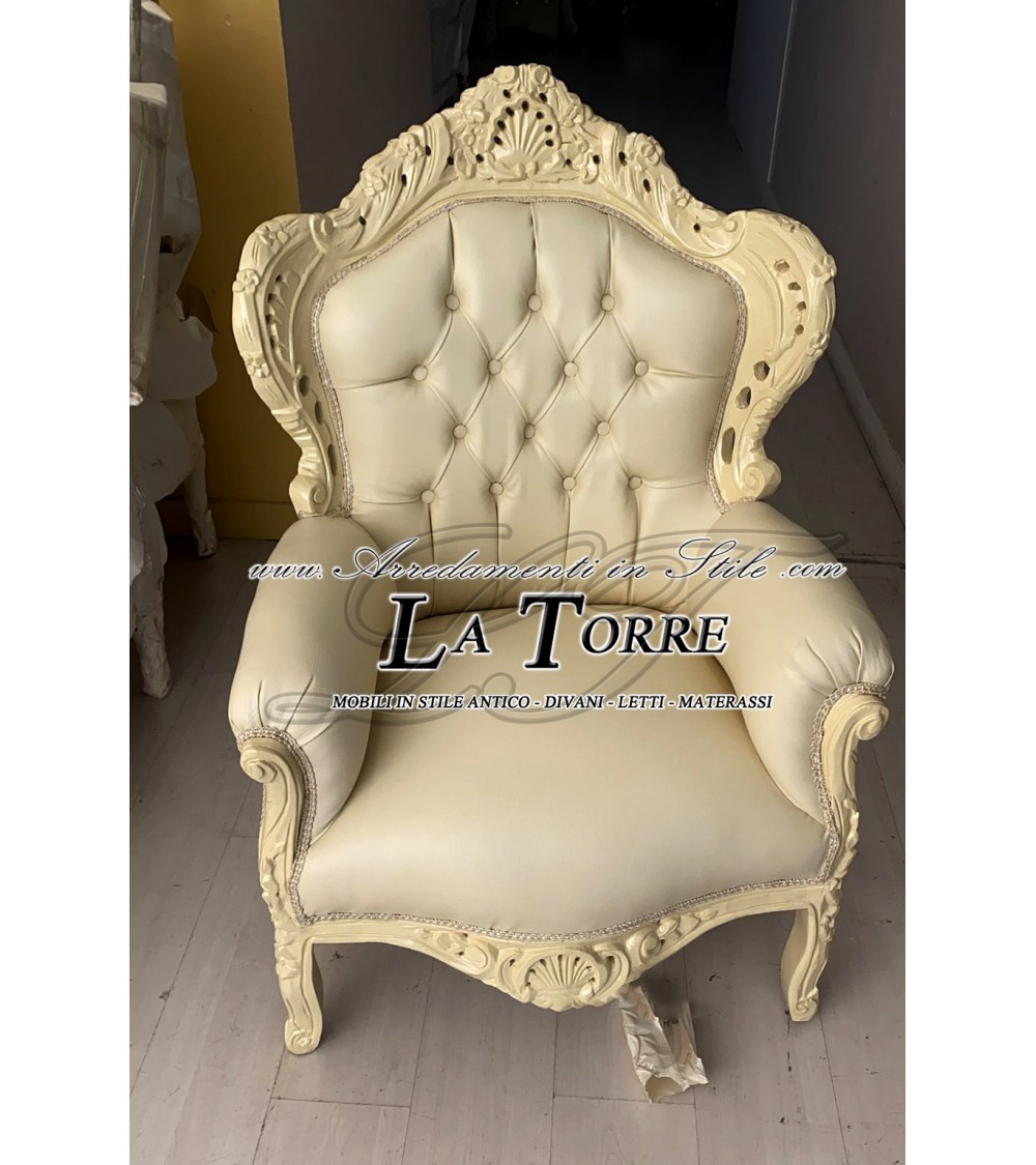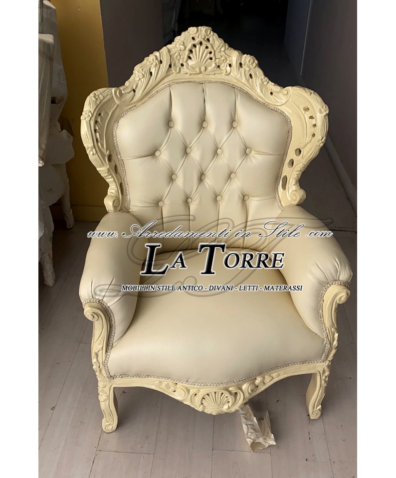 Sedia Poltrona Germany Trono Barocco ecopelle avorio champagne AL4227