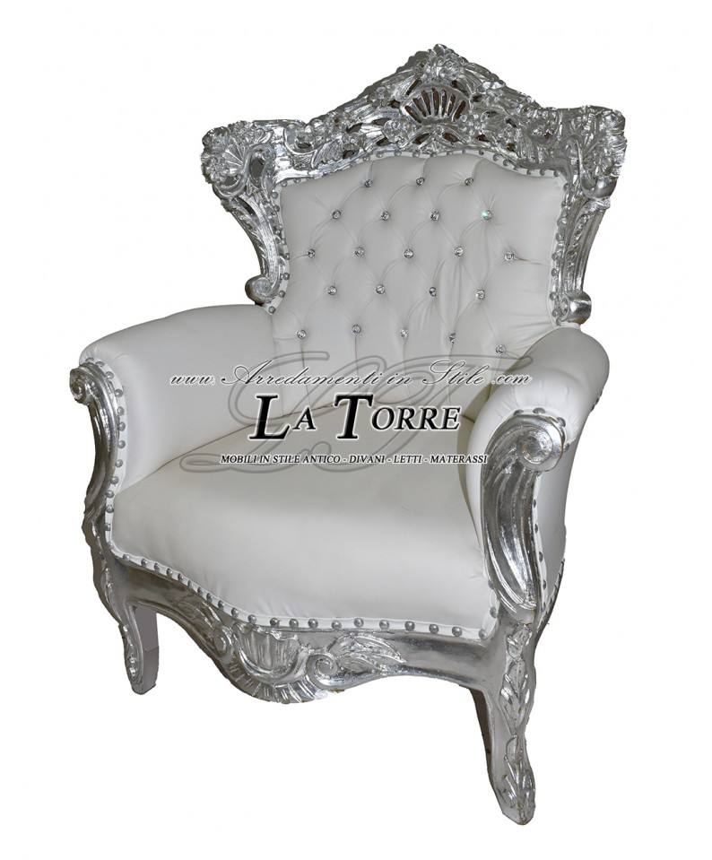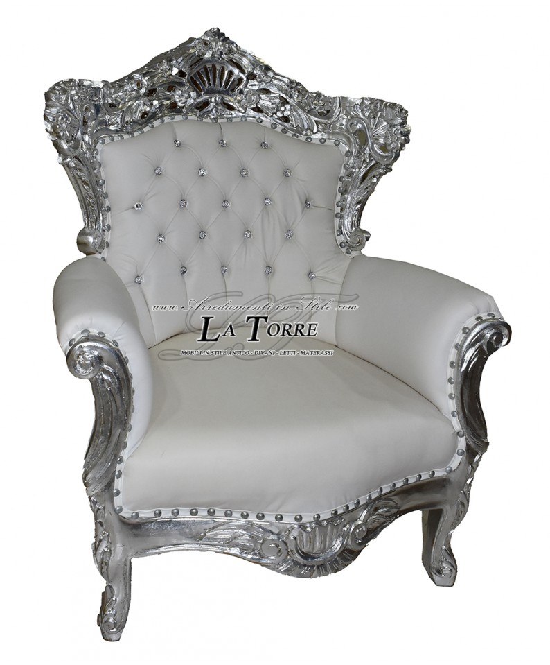 Sedia Poltrona Germany Trono Barocco argento ecopelle bianca swarovski AL4227