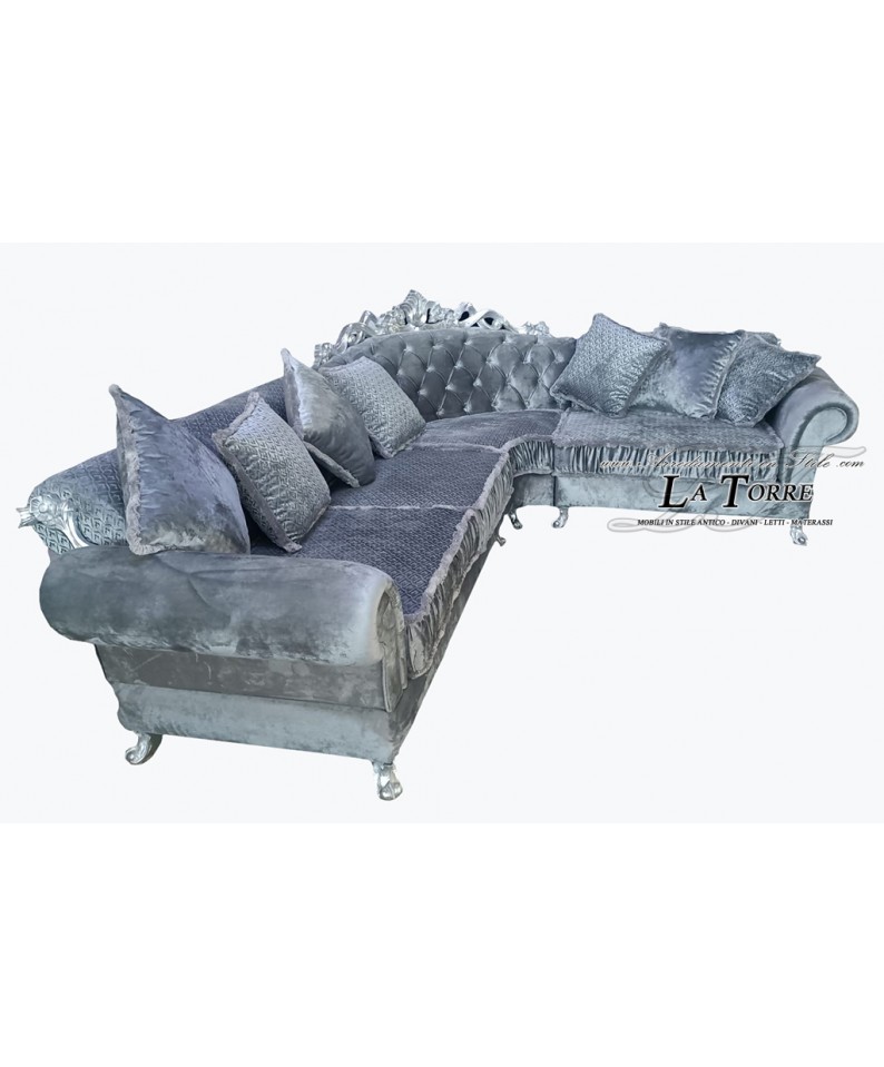 Divano 3 posti più 2 con rete e materasso corona classico barocco ecopelle o velluto qualsiasi colore Swarovski AZ16