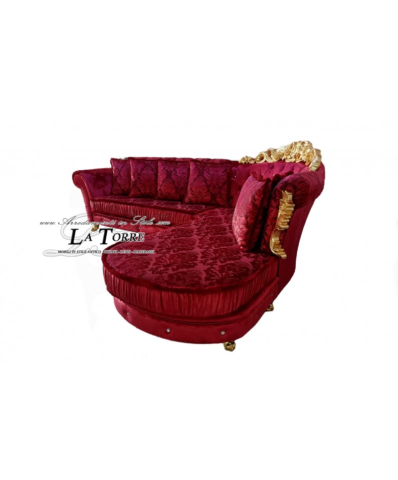 Divano 3 posti penisola e corona classico barocco ecopelle o velluto qualsiasi colore Swarovski AZ14