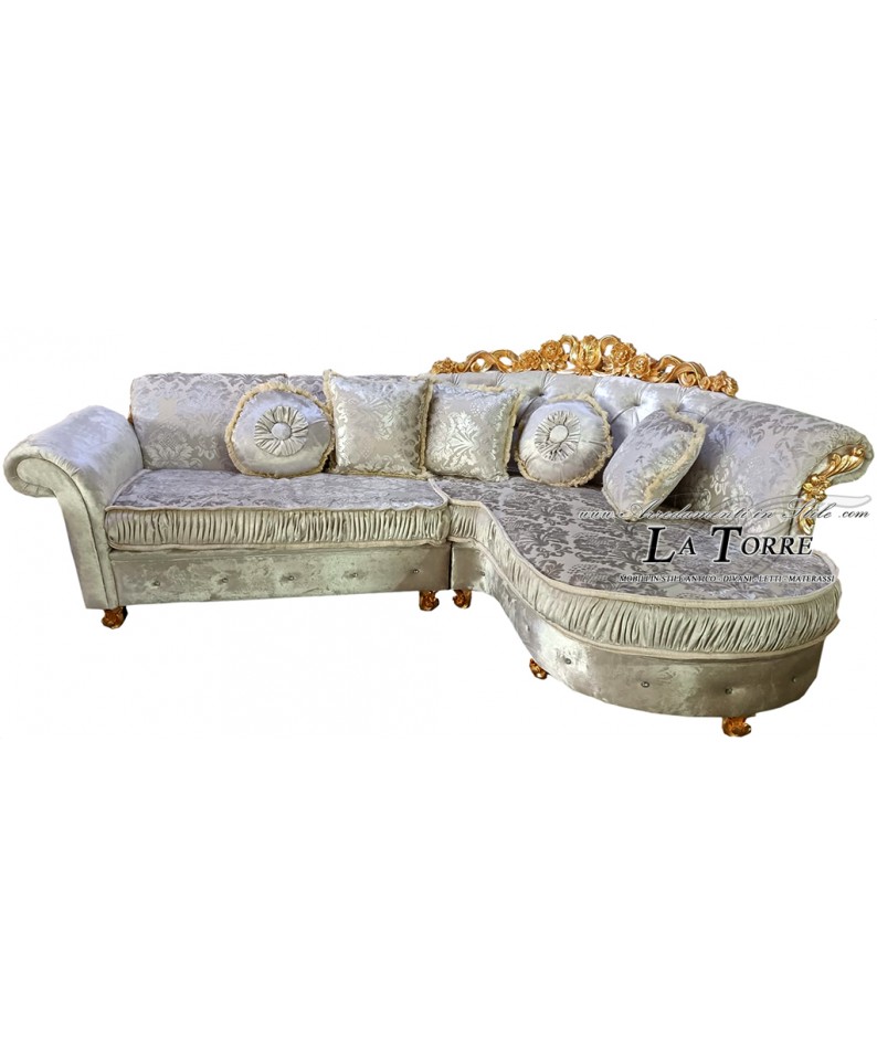 Divano 3 posti penisola e corona con o senza rete e materasso barocco ecopelle o velluto qualsiasi colore Swarovski AZ14