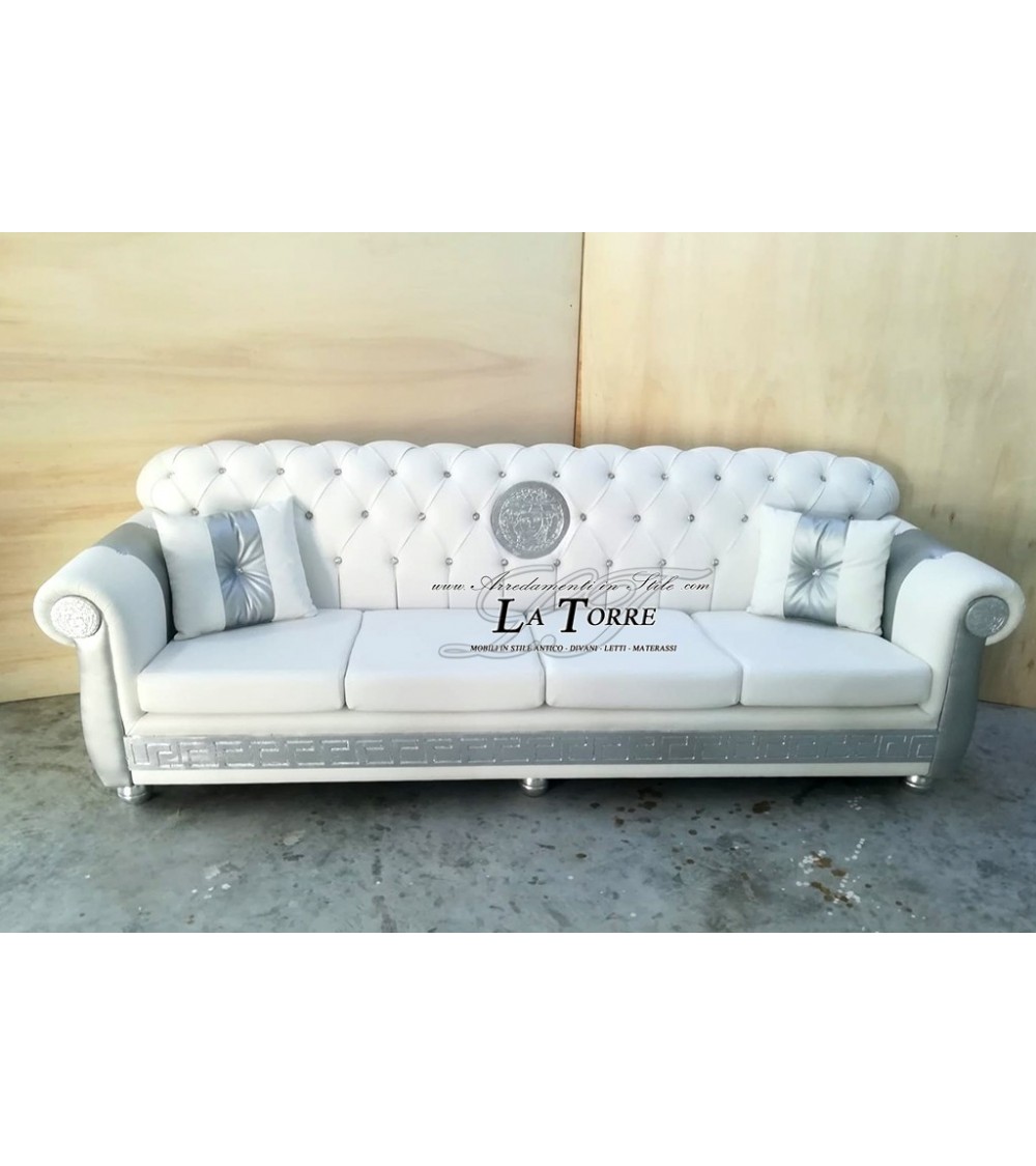 Divano 4 posti rete e materasso Chesterfield moderno Dea greca Medusa ecopelle o velluto qualsiasi colore swarovski AZ04