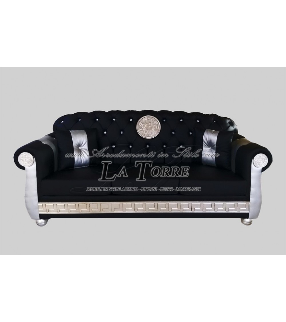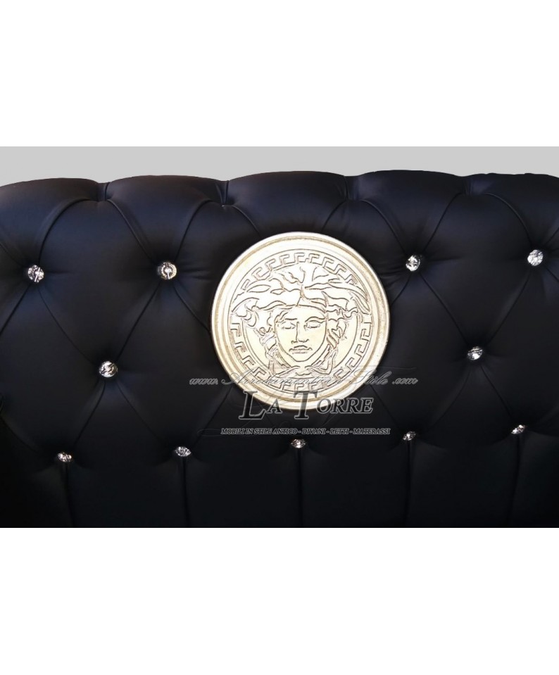 Divano 3 posti rete e materasso moderno Dea medusa ecopelle nera argento Swarovski qualsiasi colore AZ03