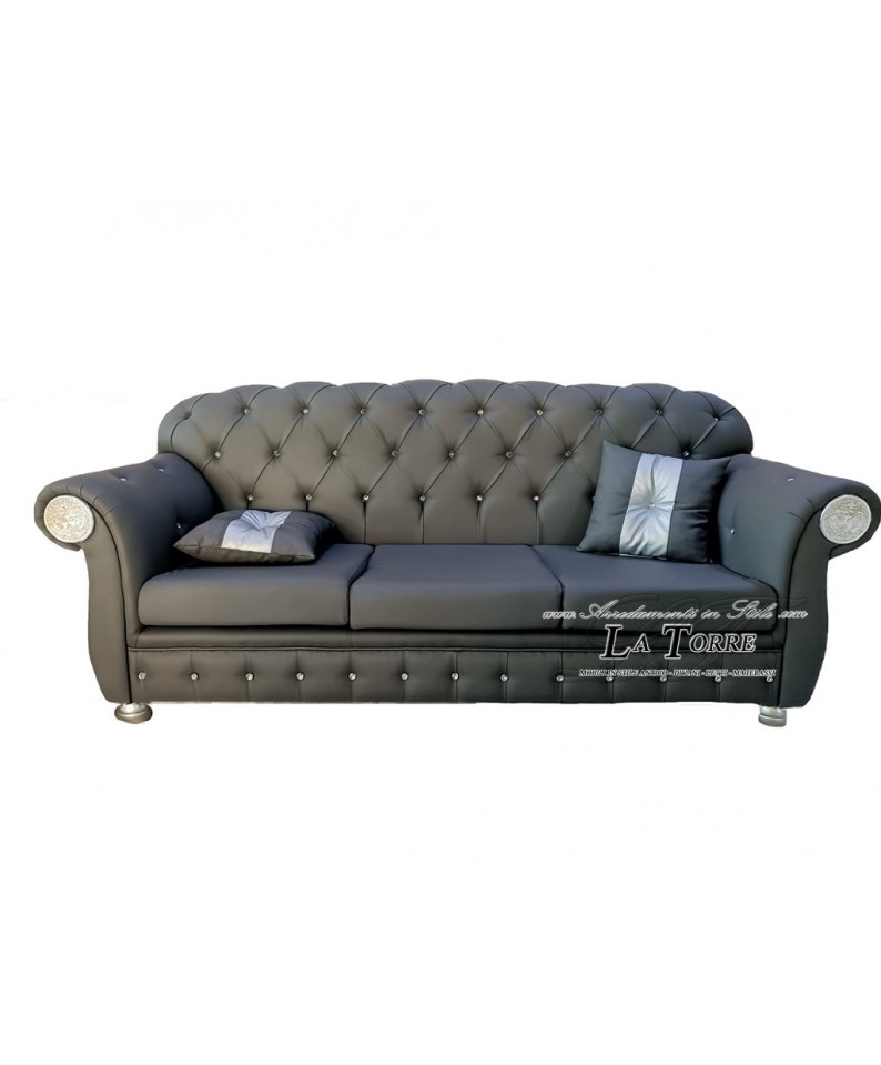Divano letto 3 posti rete e materasso Chesterfield moderno ecopelle o velluto qualsiasi colore swarovski AZ03