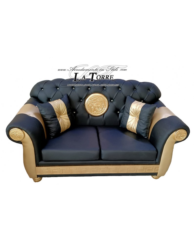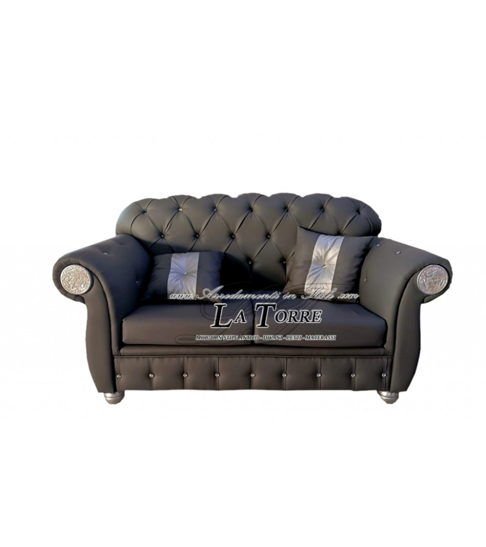 Divano 2 posti rete e materasso Chesterfield moderno ecopelle o velluto qualsiasi colore swarovski AZ02