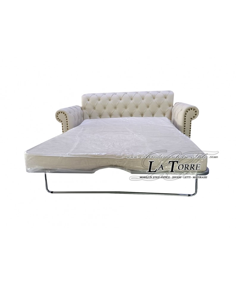 Divano 3 posti rete e materasso capitonné moderno velluto o ecopelle avorio bottoni qualsiasi colore AZ10
