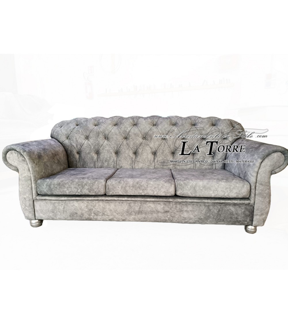 Divano letto 3 posti rete e materasso Chesterfield moderno ecopelle o velluto qualsiasi colore swarovski AZ03