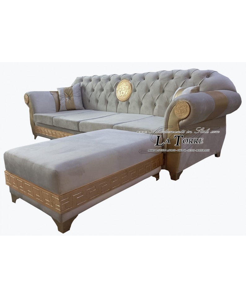 Divano 4 posti penisola rete e materasso chesterfield moderno dea medusa ecopelle o velluto swarovski AZ07
