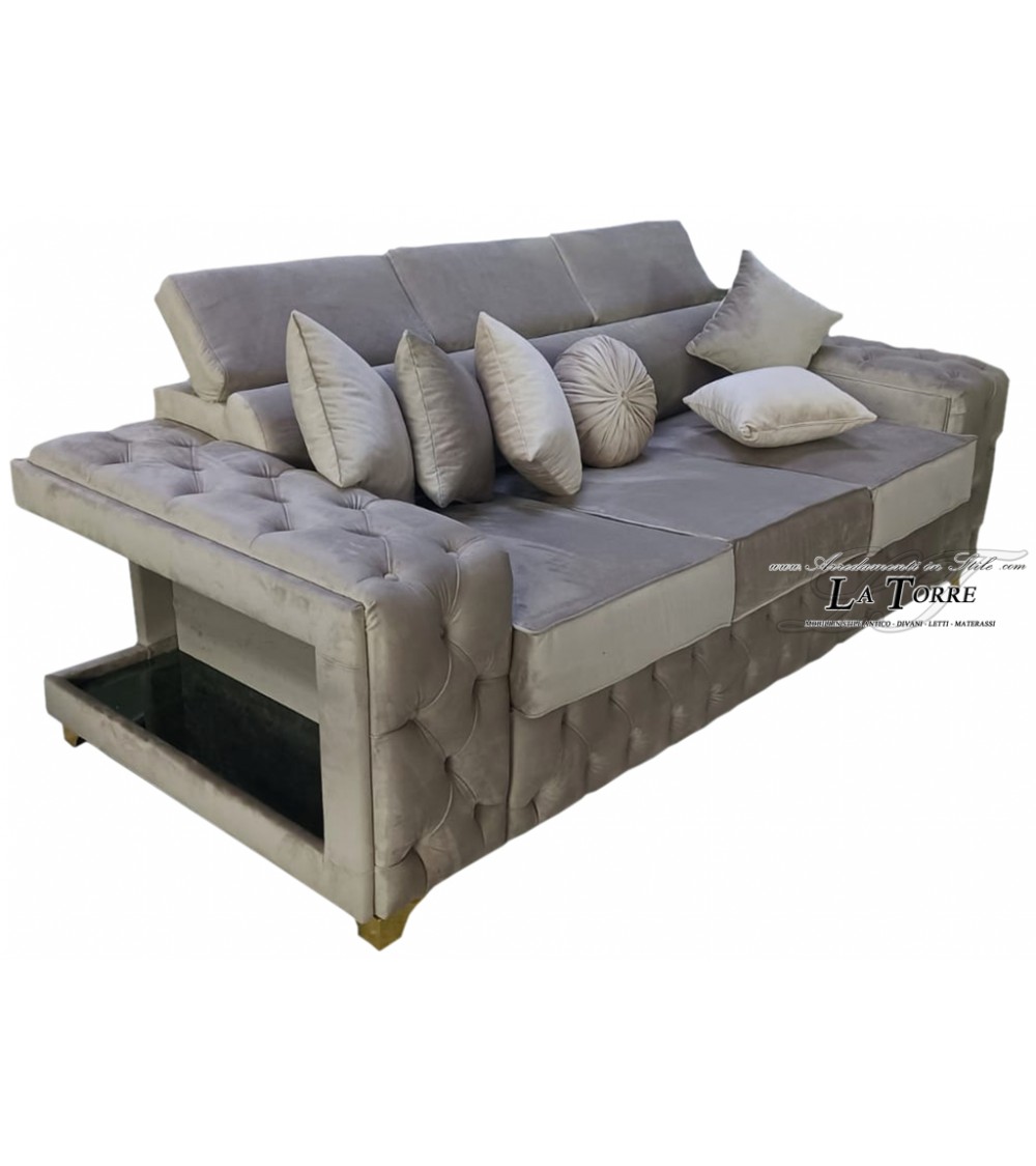 Divano moderno con rete e materasso 3 o 2 posti con luce a led velluto o ecopelle qualsiasi colore AZ29