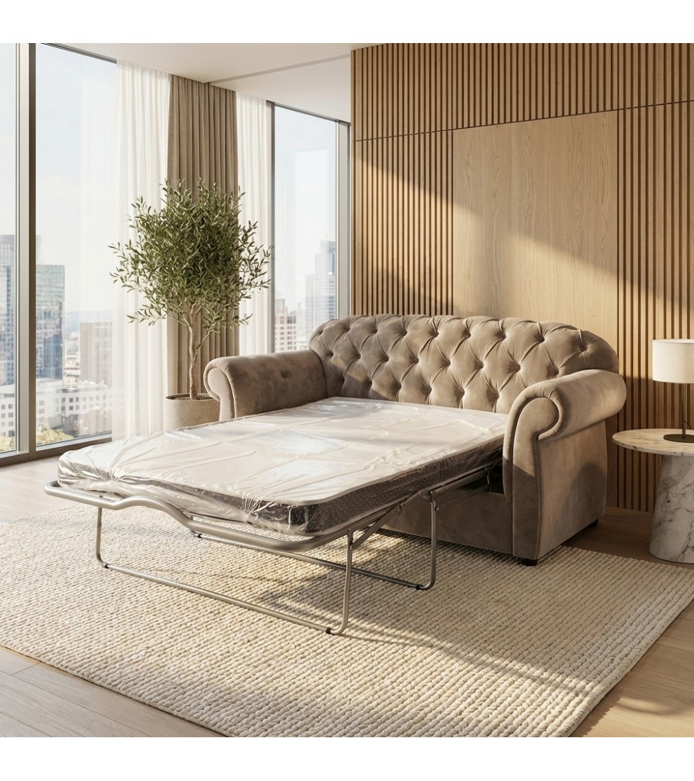 Divano Letto Chesterfield 2 Posti Capitonné Ecopelle o Tessuto Personalizzabile AZ02