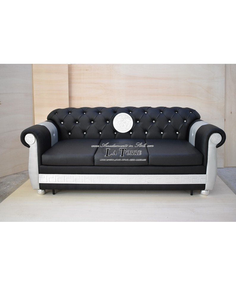 Divano letto 3 posti rete e materasso con penisola Chesterfield moderno ecopelle o velluto qualsiasi colore swarovski AZ45