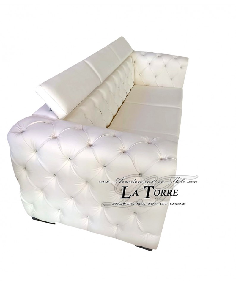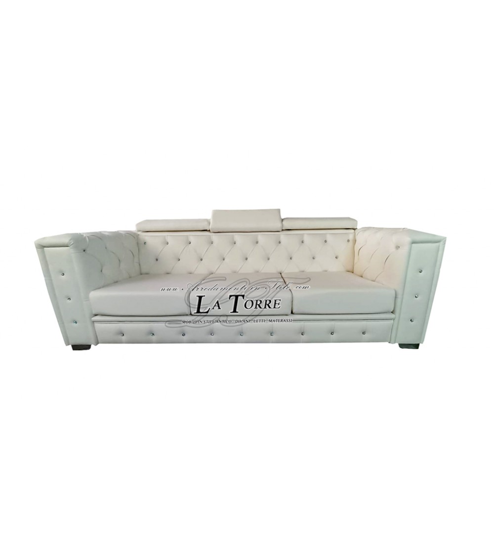 Divano letto 3 posti rete e materasso Chesterfield moderno ecopelle o velluto qualsiasi colore swarovski AZ48