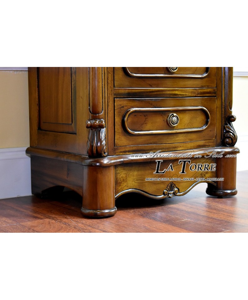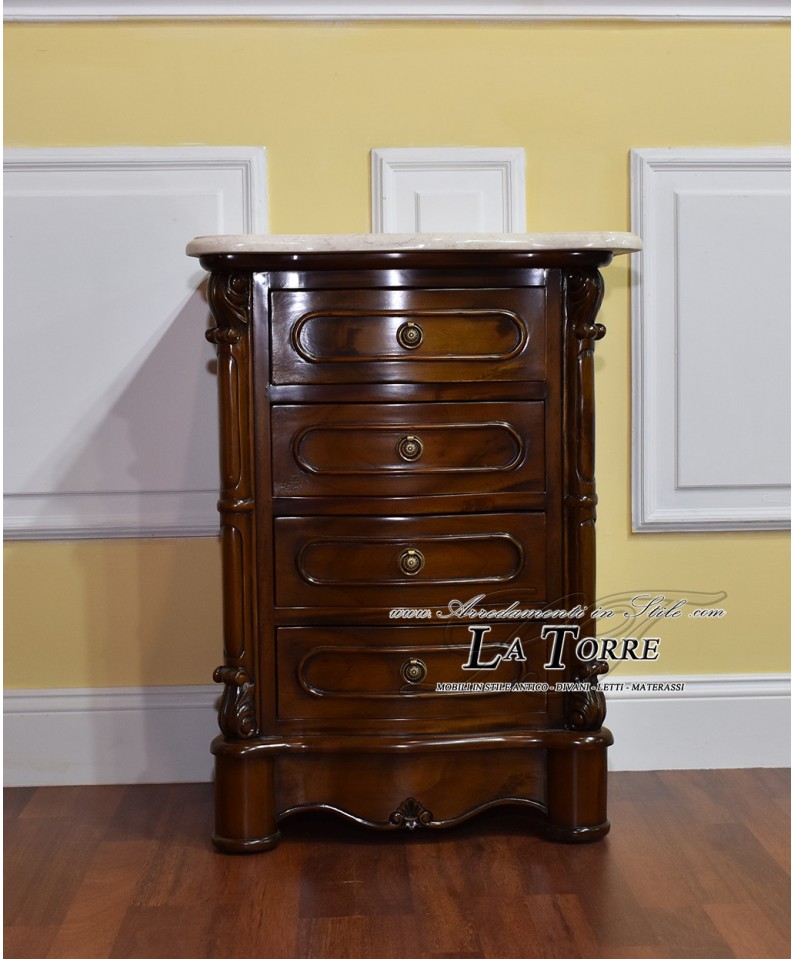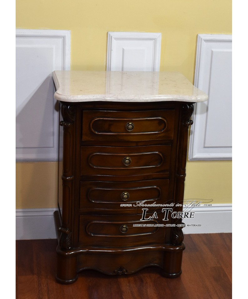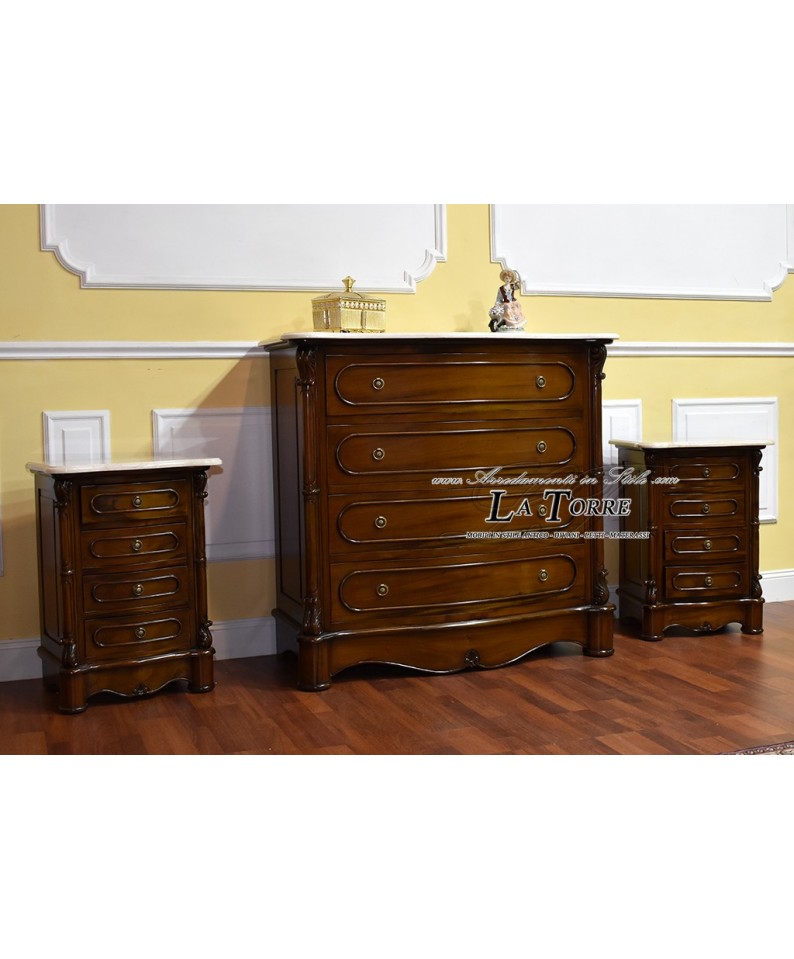 Trittico Cannocchiale camera da letto gruppo notte comò comodino cassetti lucidato noce marmo crema Na15