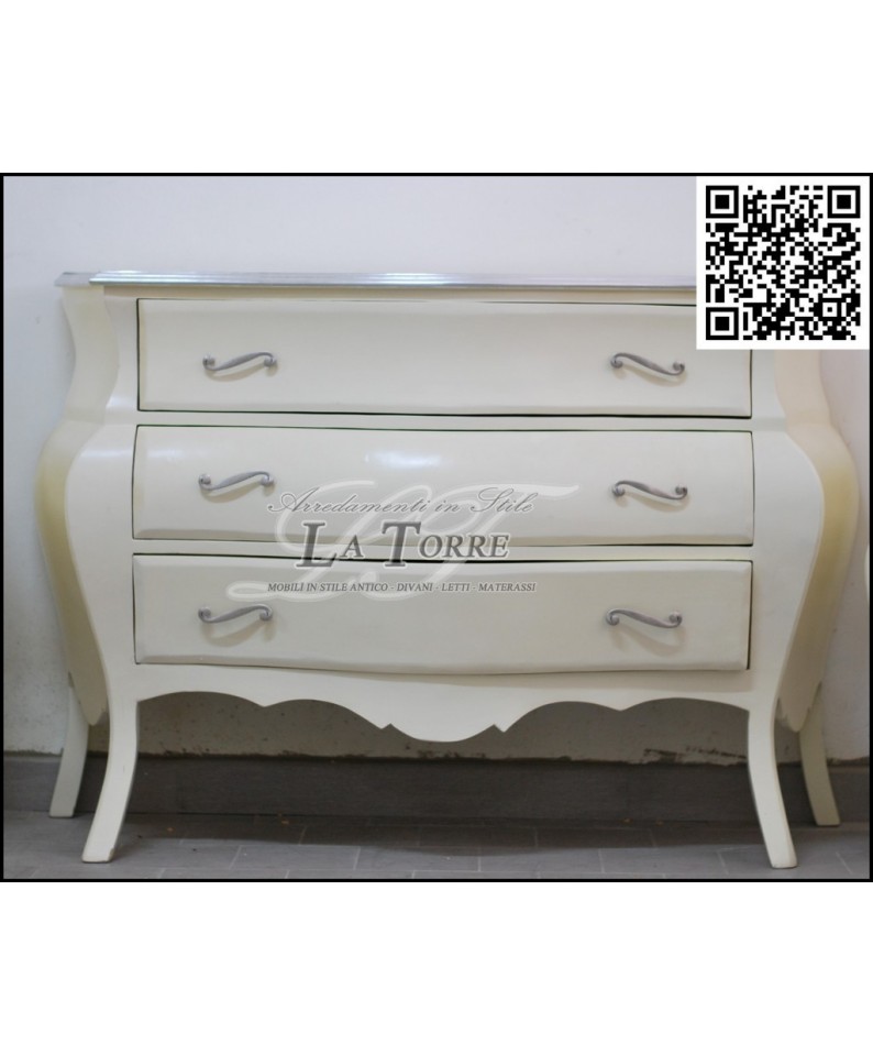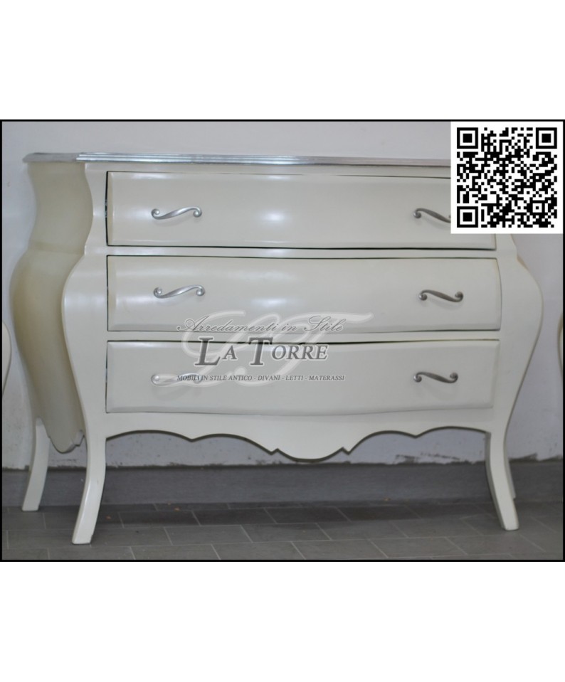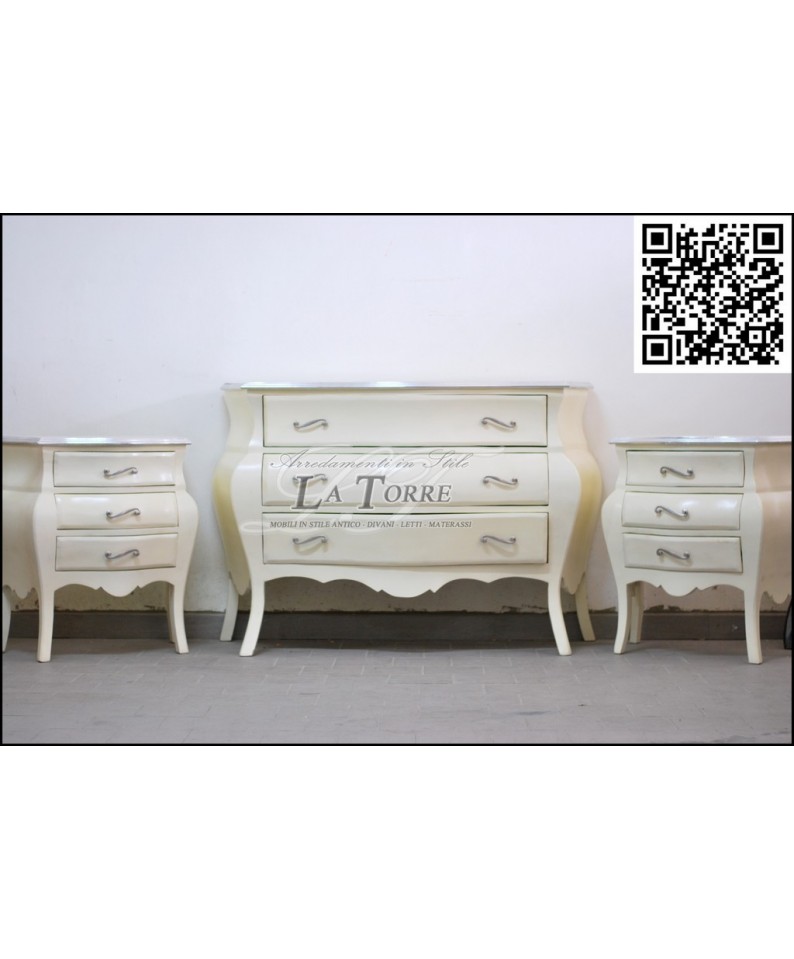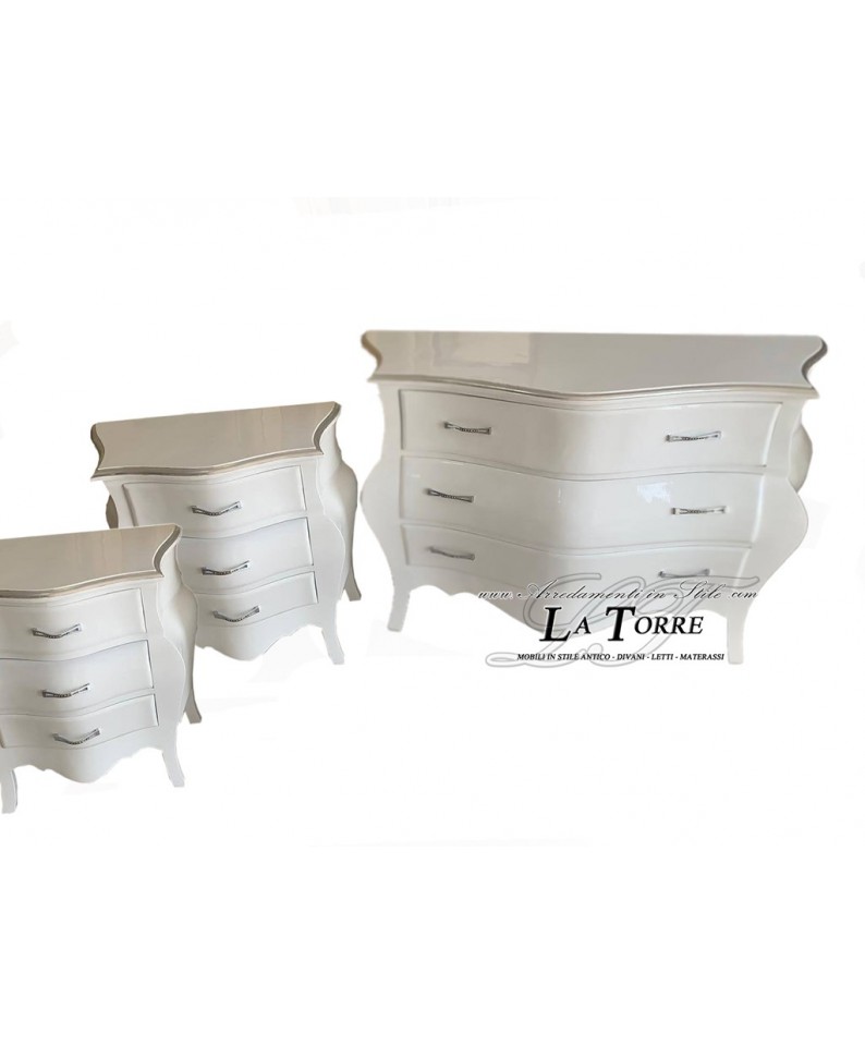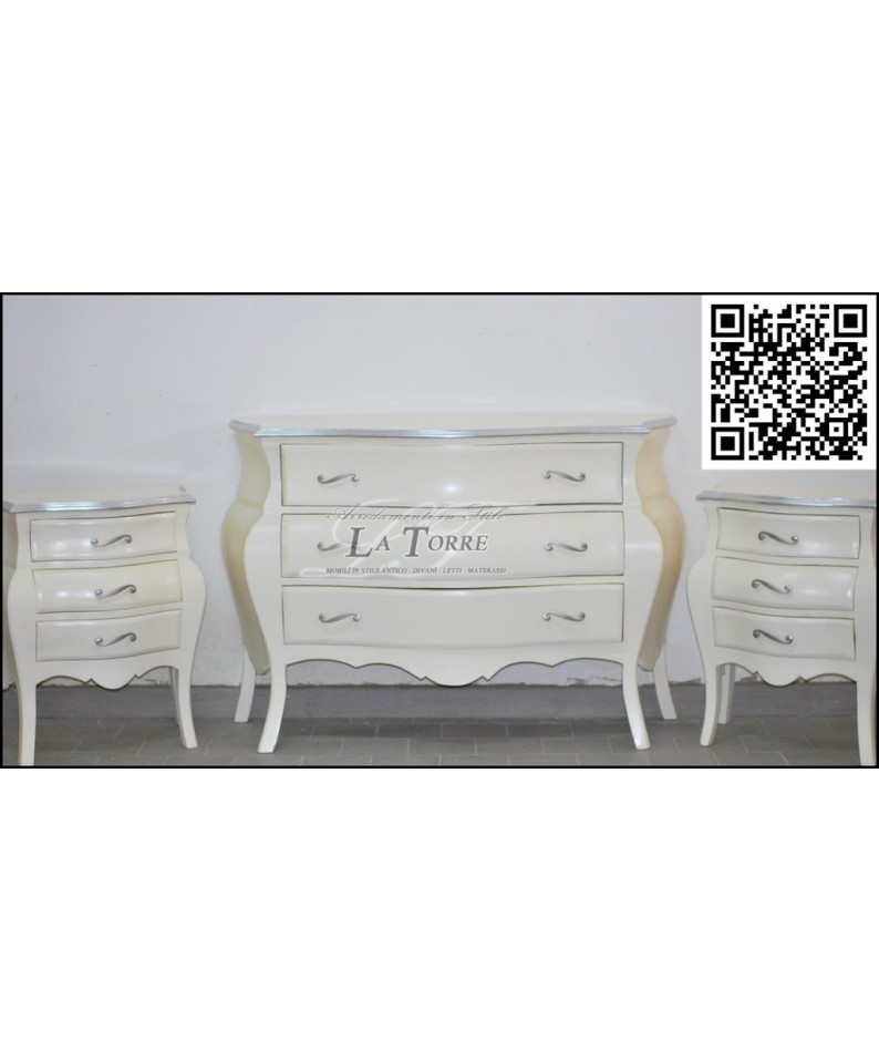 Trittico camera da letto comò comodino bombato bianco argento Barocco Luigi XV AL1901