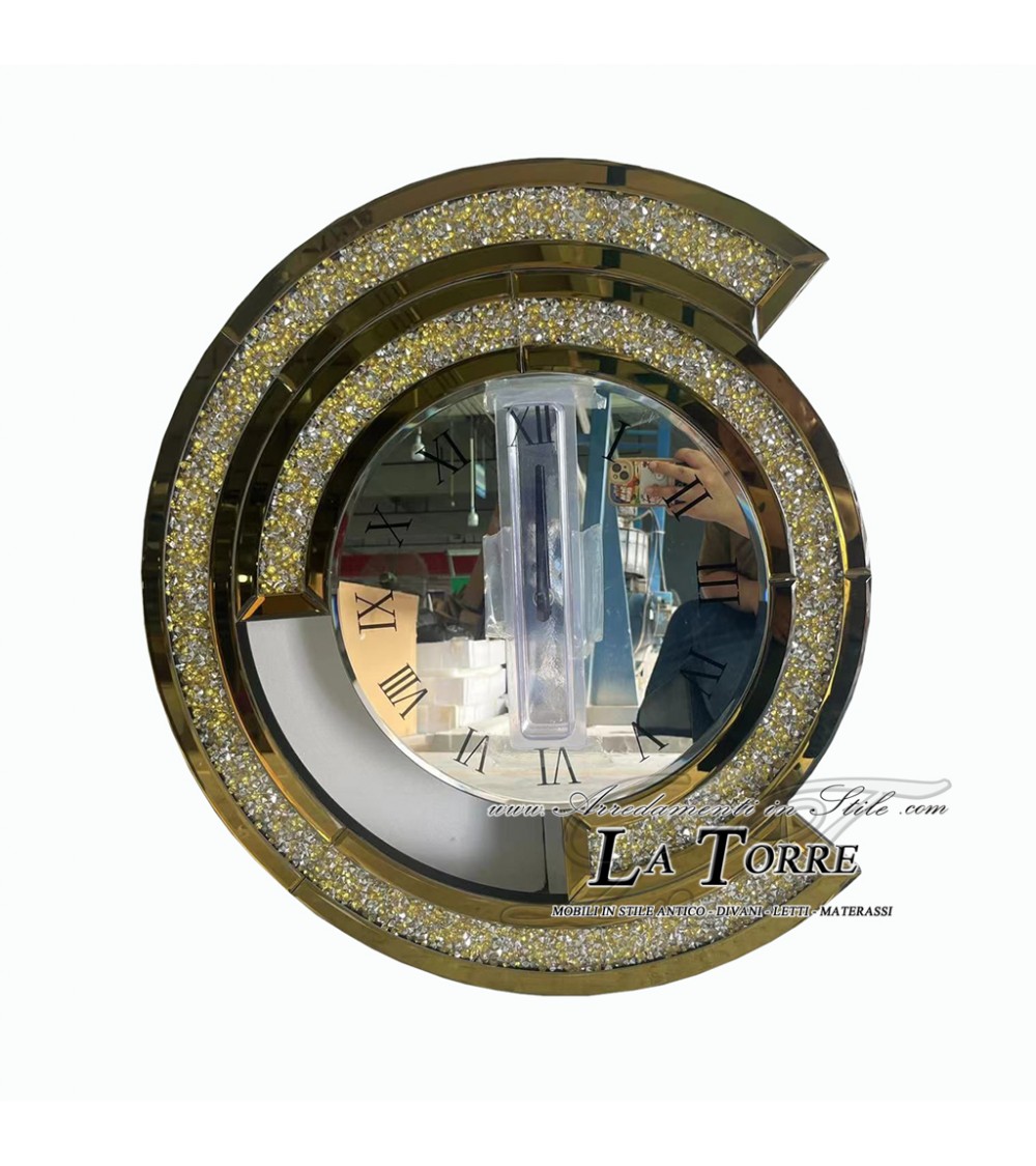 Orologio da Parete Moderno Rotondo con Cristalli – Design Geometrico Specchiato Elegante Ø70 cm B65F oro
