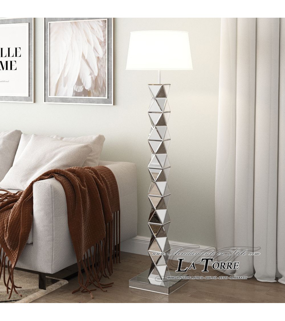 Lampada da Terra Moderna con Swarovski – Piantana di Lusso Specchiata per Soggiorno e Camera H140 L69C
