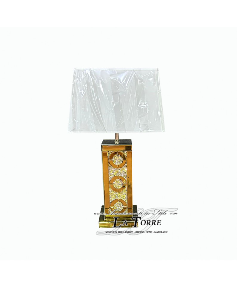 Lampada da Tavolo Moderna Oro con Swarovski – Base Rettangolare Specchiata di Lusso H65 B112