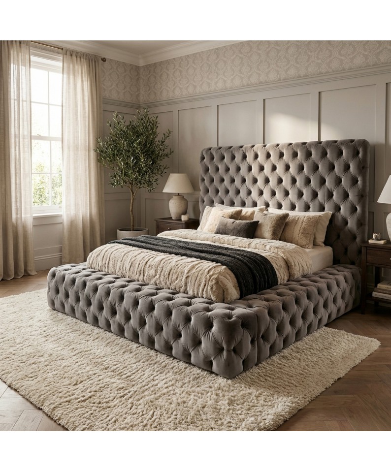 Letto Matrimoniale King Size Livio Moderno con Contenitore – Velluto o Ecopelle Personalizzabile