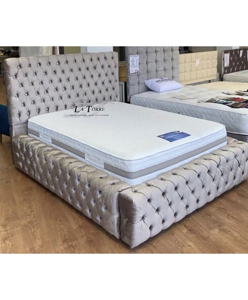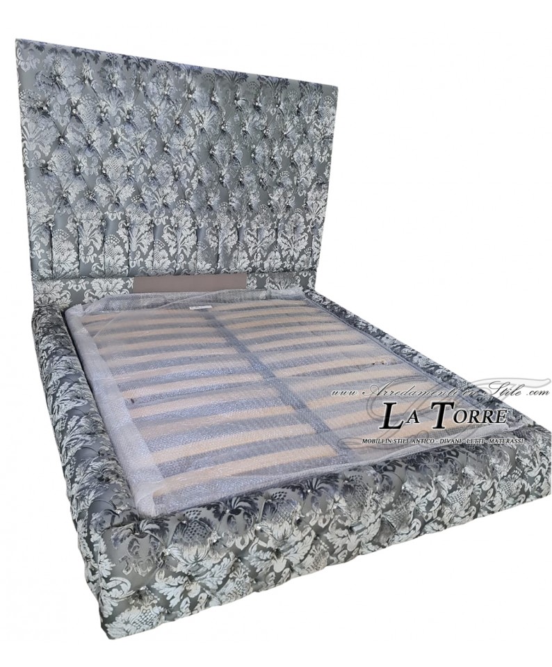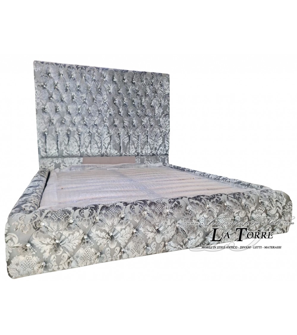Letto Matrimoniale contenitore Moderno tessuto damascato grigio Margaret