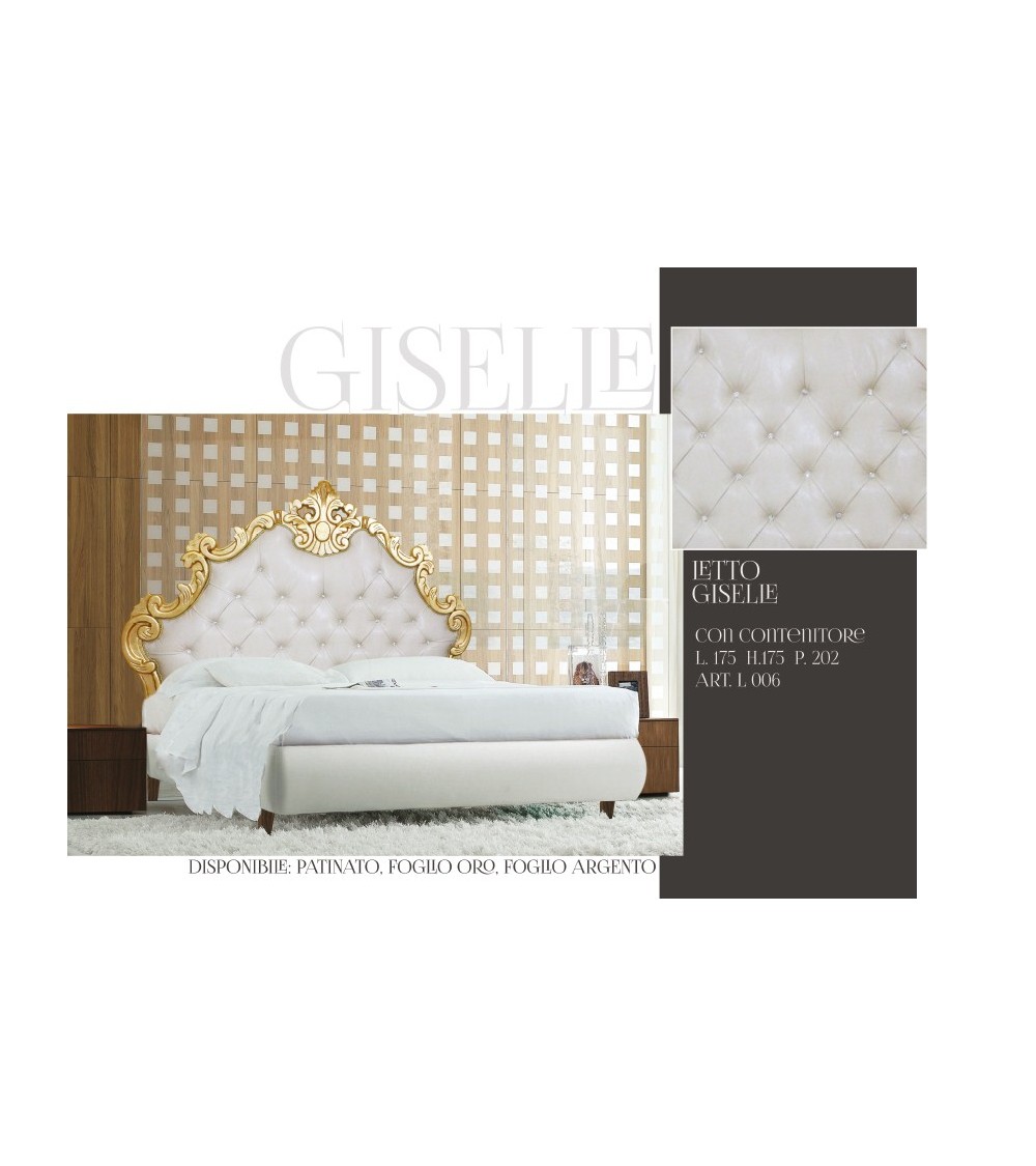 Letto Matrimoniale Barocco ecopelle o vellutino legno foglia oro argento qualsiasi colore Giselle