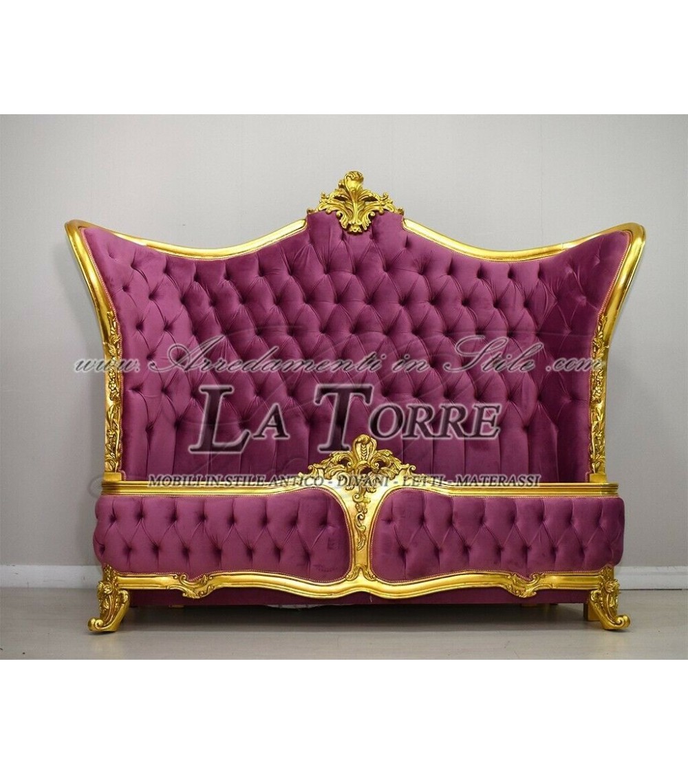 Letto Matrimoniale Bergere Luigi XV impero Barocco oro velluto fucsia Swarovski AL1885