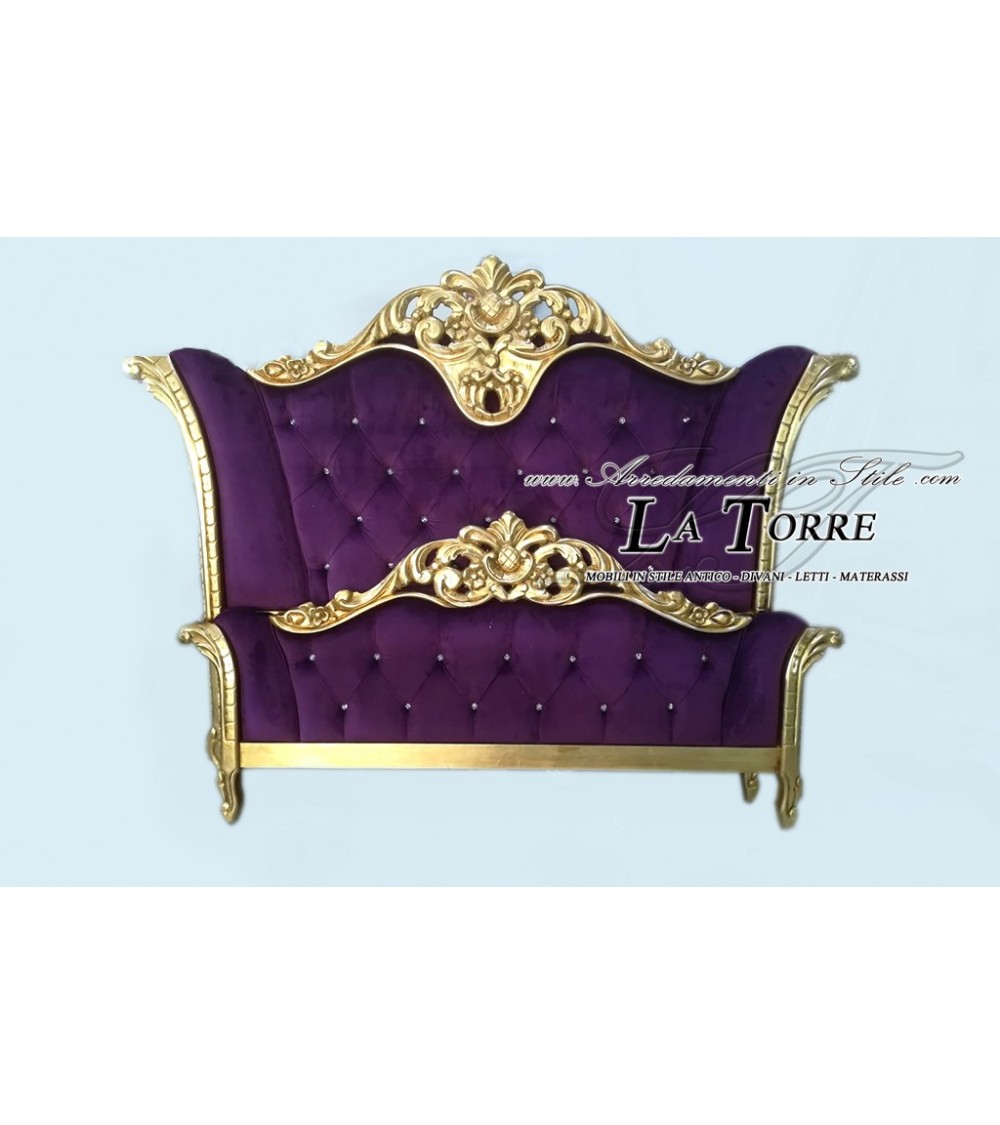 Letto Matrimoniale Barocco ecopelle o tessuto legno foglia oro argento qualsiasi colore Ferragni