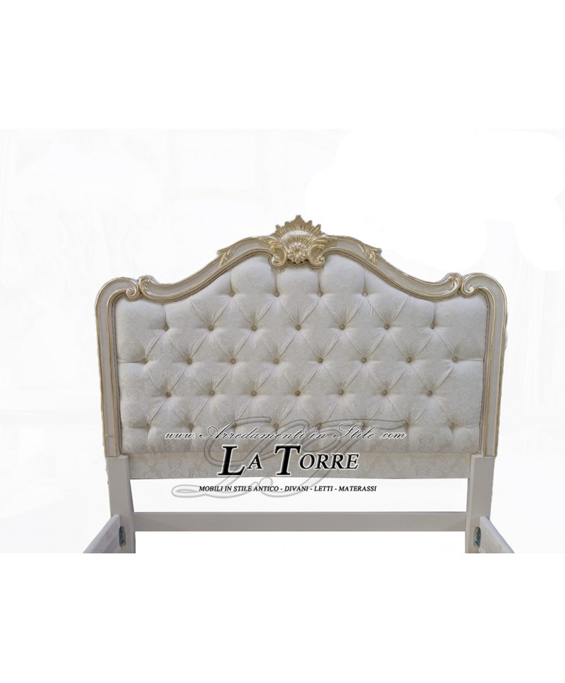Letto Matrimoniale contenitore Barocco velluto o ecopelle legno massello oro argento Liam