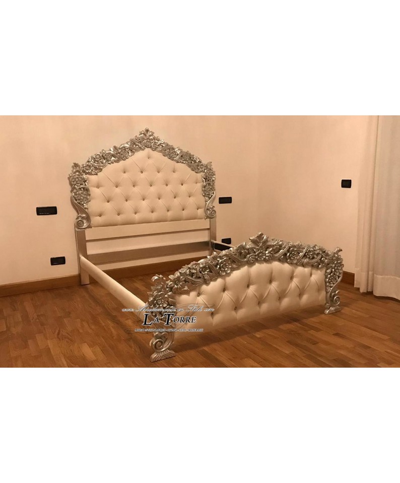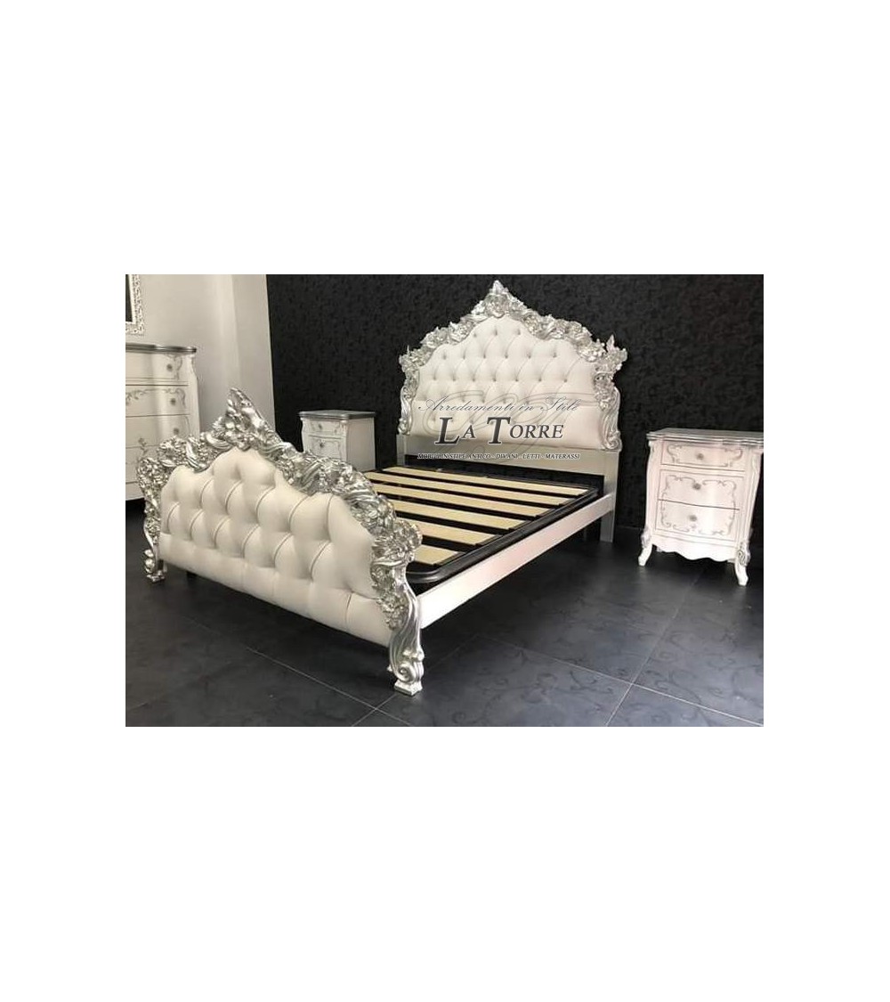 Letto Matrimoniale contenitore ecopelle Barocco argento bianco PILISSENA