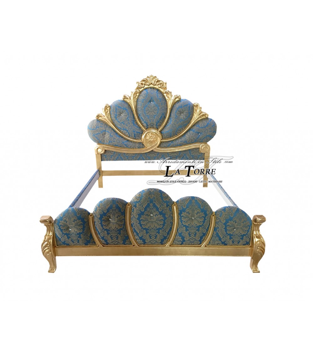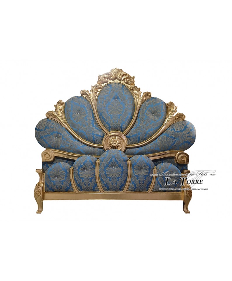 Letto matrimoniale barocco contenitore legno massello intagliato a mano ecopelle o tessuto qualsiasi colore EMY