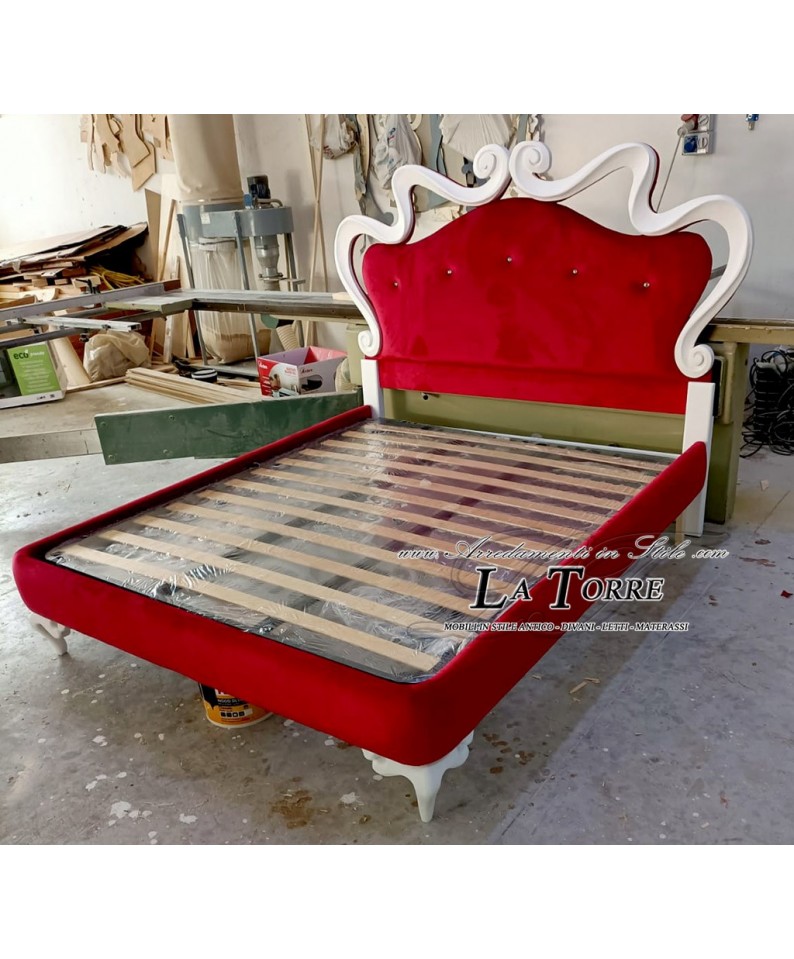 Letto Matrimoniale contenitore Barocco velluto o ecopelle rosso struttura bianca Mary