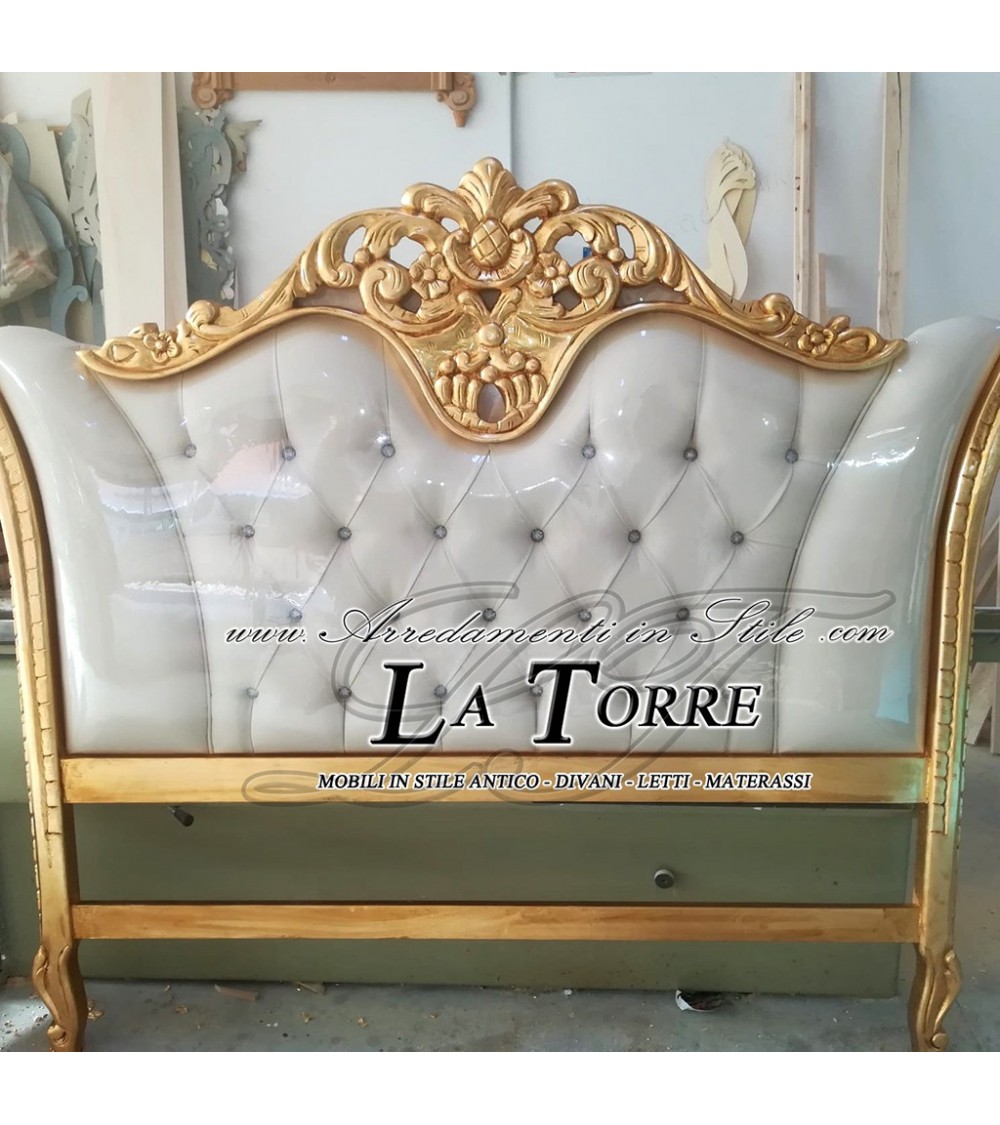 Letto Matrimoniale Barocco ecopelle o tessuto legno foglia oro argento qualsiasi colore Ferragni
