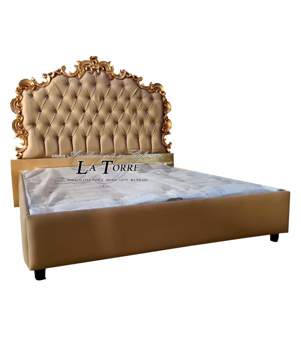Letto Matrimoniale Barocco contenitore oro argento ecopelle vellutino swarovski qualsiasi colore Rebecca