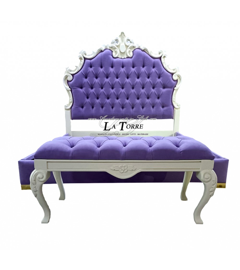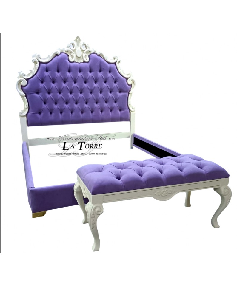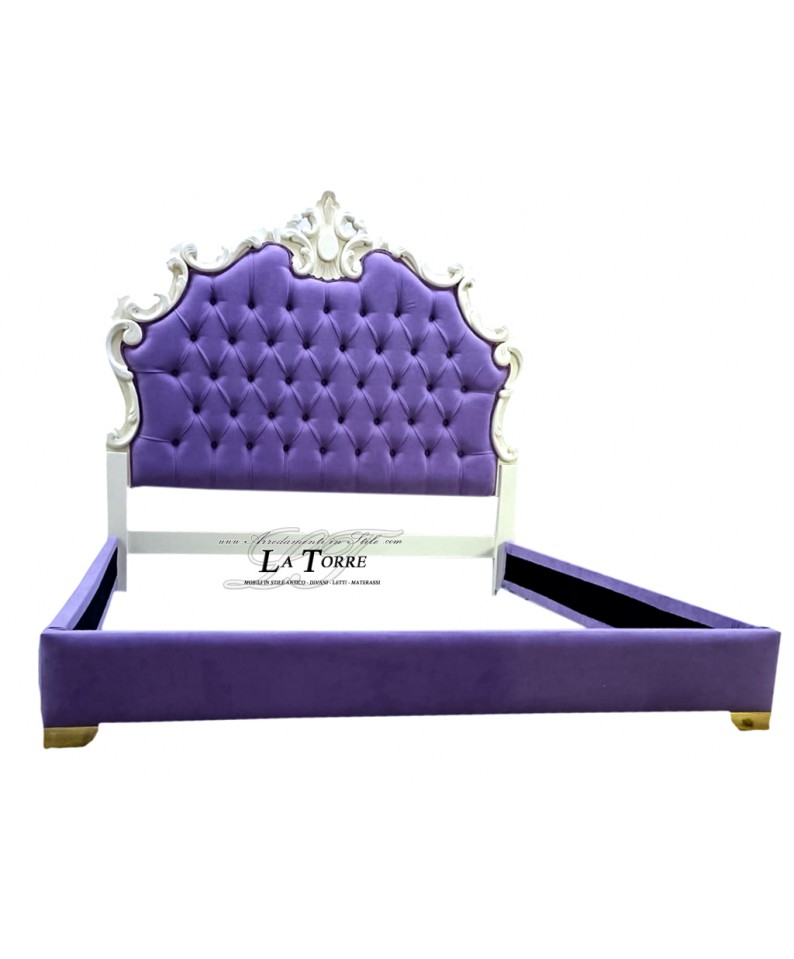Letto Matrimoniale Barocco ecopelle o vellutino viola legno bianco qualsiasi colore Giselle