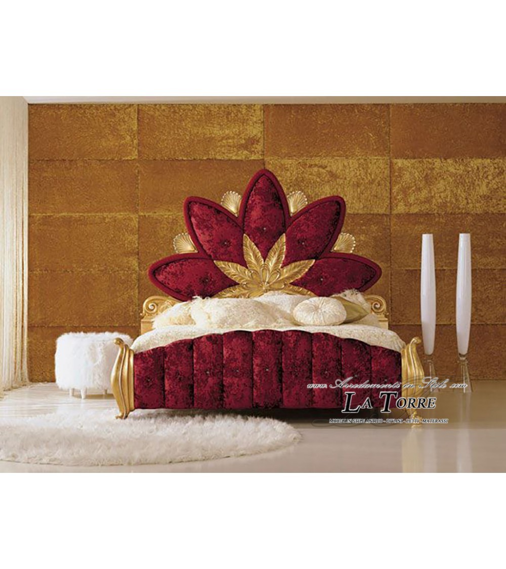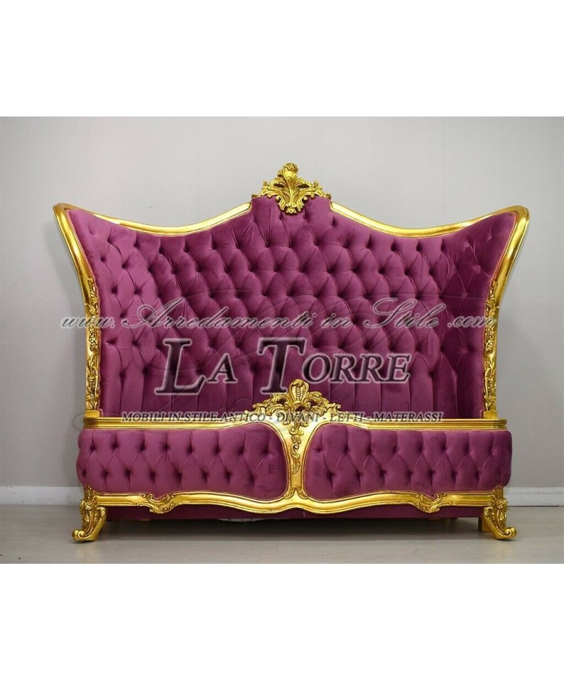 Letto Matrimoniale Barocco contenitore foglia oro Swarovski - velluto qualsiasi colore Perla