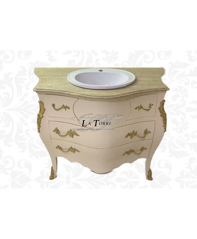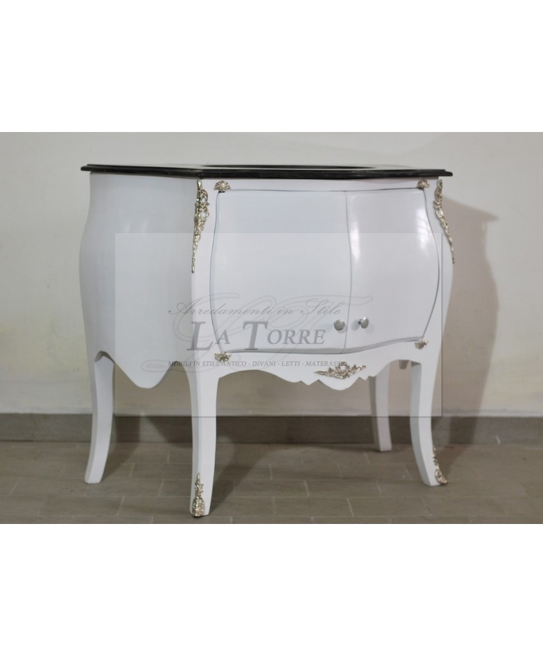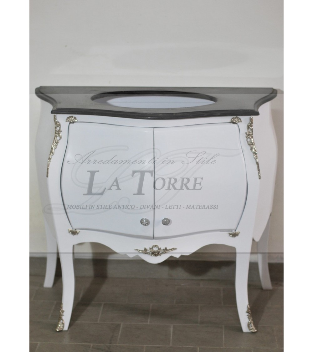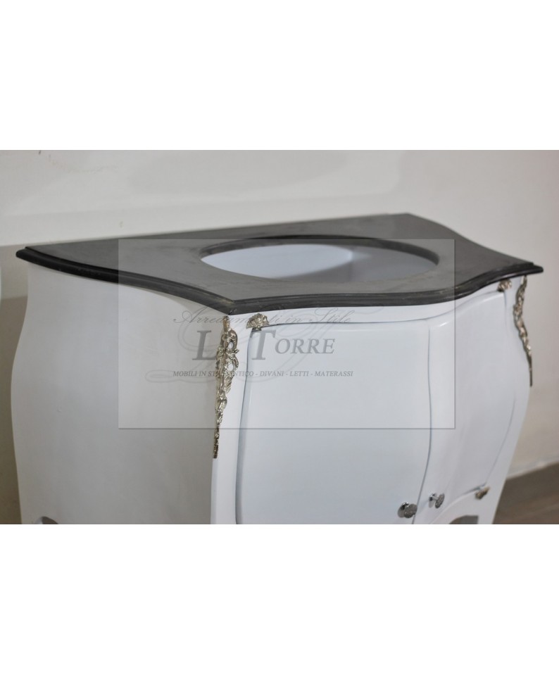 Mobile bagno Luigi XV bianco marmo scuro bombato barocco moderno LT9099